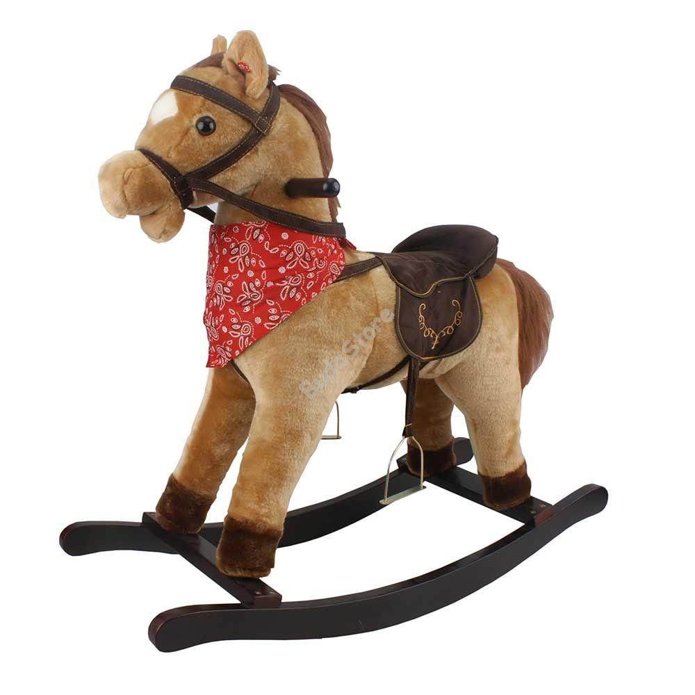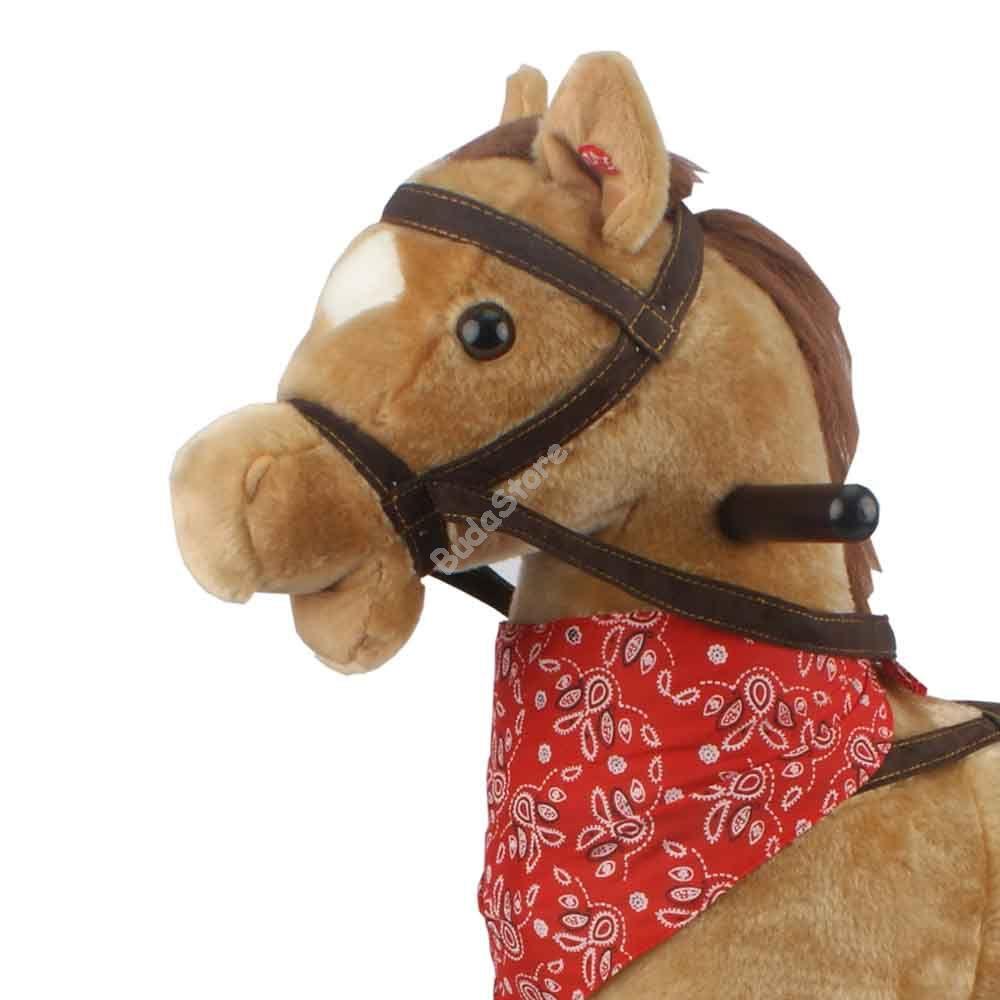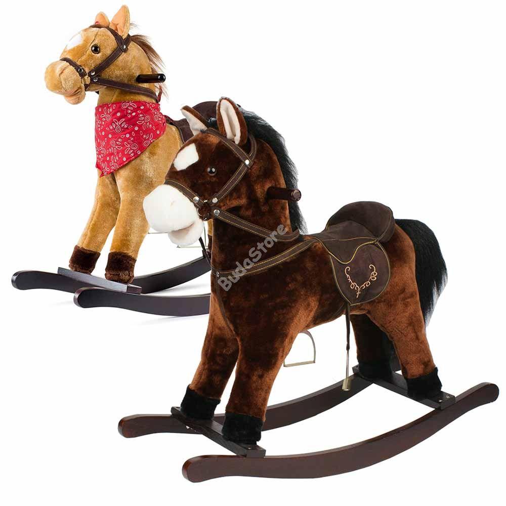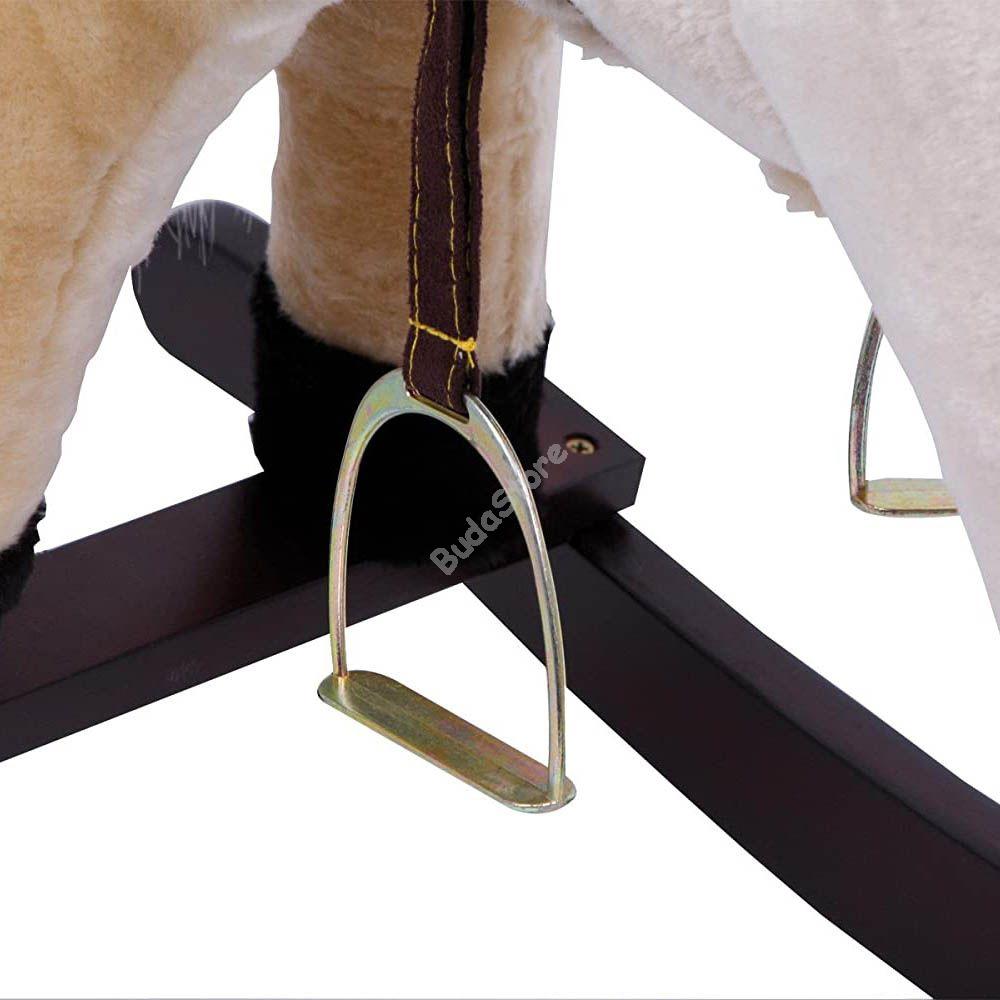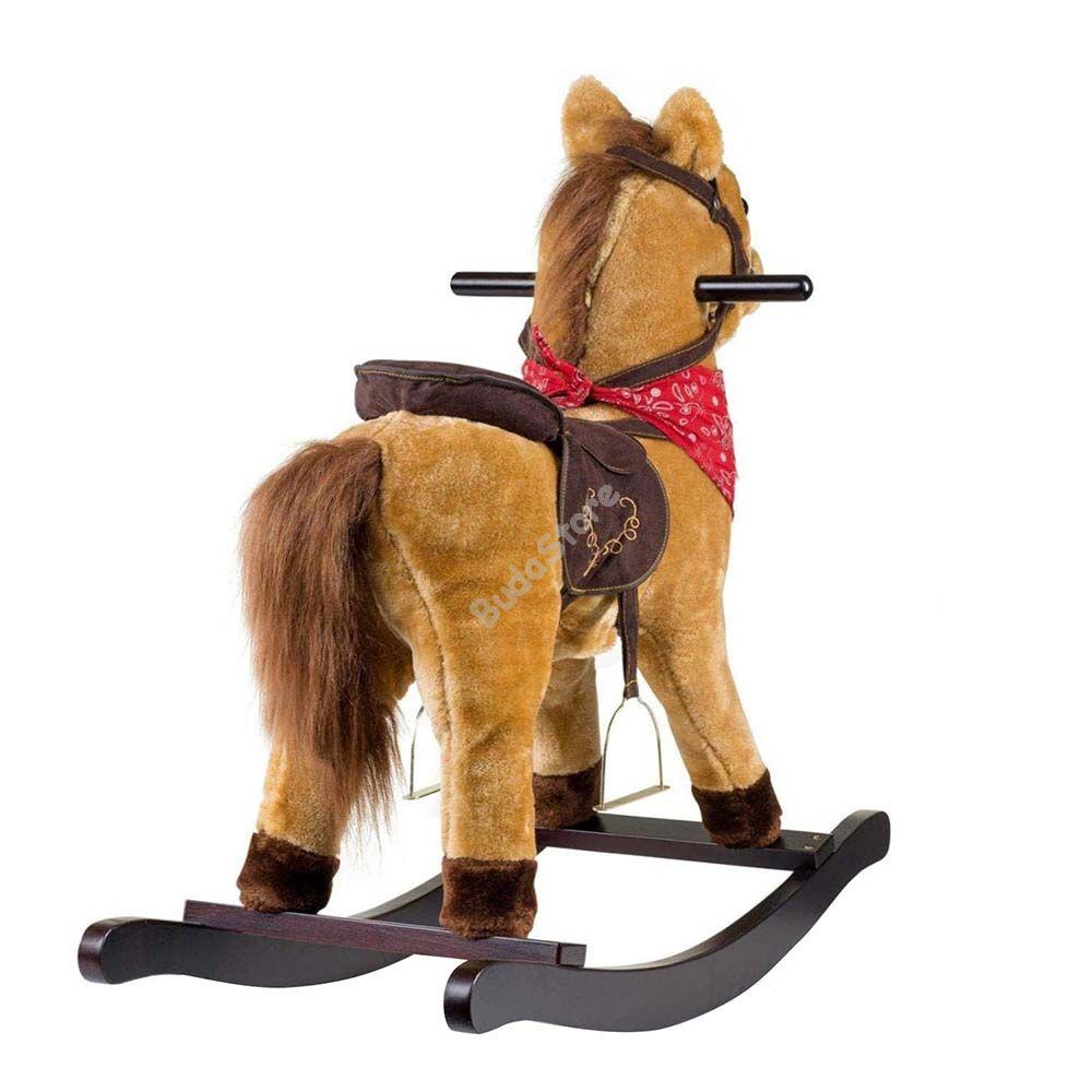 A hintaló plüssből készült, így nagyon puha és finom tapintású, a fa elemek pedig stabillá teszik. A játék akár 30 kg-ig terhelhető, a lovaglás élményét a különböző hangok teszik még élvezetesebbé. A jobb fül megnyomásával nyerítő, a bal fül megnyomásával pedig vágtató hangot hallhatunk. A hintaló nyereggel és lábtartóval felszerelt, így kényelmesebben használható. A játék használata 3 éves kor felett ajánlott.