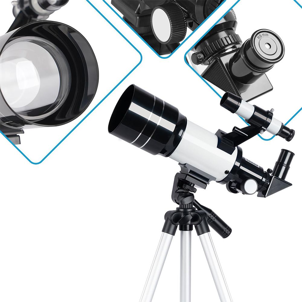 A csillagászati teleszkóp lehetővé teszi, hogy közelebbről megvizsgáld az égitesteket, és a modern technológia segítségével a mobiltelefonoddal meg is örökítheted az éjszakai égbolt csodáit. Nagy felbontású optikával rendelkezik,  így részleteiben tanulmányozhatod a holdat. Stabil, könnyen hordozható állvánnyal rendelkezik, így bárhová magaddal viheted ami ideális kirándulások alkalmával. Kezdő és tapasztald csillagászok számára is izgalmas élményt nyújt.