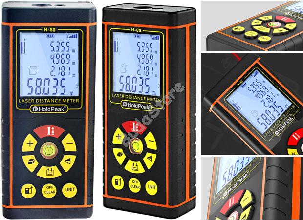 HOLDPEAK 5080H Digitális lézeres távolságmérő 116691 45 500 Ft / db [2 db 2%] [5 db 3%] [10 db 5%] Gyártó: HOLDPEAK Cikkszám: S003_116691 Súly: 0,50 kg Átvétel: Ez a termék boltunkban személyesen is átvehető. Digitális, lézeres távolságmérő, 0.03-80m, memória, többsoros LCD-kijelző, IP54. Kiváló minőségű, lézeres távolságmérő, mely nélkülözhetetlen minden olyan szakterületen, ahol a távolság pontos meghatározására van szükség. Számos funkciója lehetővé teszi, hogy a megmért távolságokból automatikusan kiszámolja a területet vagy akár a térfogatot is. A mért eredményeket a jól látható LCD kijelzőről olvashatja le. - Kis teljesítményű, class 2 lézeres mérőmodul. - Lézer hullámhossza: 635nm. - Lézer teljesítménye: maximum 1mW. - Érzékelő felület: 25mm. - Többsoros LCD kijelző, háttérvilágítással. - Mérési tartomány: 0.03m - 80m. - Kijelzés felbontása: 0.001m. - Pontosság: +/- 1,5mm. - Mérési idő: 0.1-4mp. - Utolsó 20 mérés megőrzése a memóriában. - Minimum és maximum távolság eltérés számítása. - Háromszög, dupla háromszög magasság mérés. - Négyszög területszámítás. - Térfogatszámítás. - Hibás mérés okának kijelzése kódszámmal. - Lézer automatikus kikapcsolása 60mp után. - Készülék automatikus kikapcsolása 4p után. - Tápfeszültség: 3VDC 2 db AAA elemről. - Elemek élettartama: kb. 5000 mérés. - IP54 védettség. - Működési hőmérséklet: 0°C-40°C. - Tárolási hőmérséklet: -20°C-60°C. - Működési páratartalom: maximum 70%. - Méretei: 120mm x 53mm x 29mm. - Súlya: 130g (elemekkel). - CE minősítés. Mennyiség db Nem rendelhető