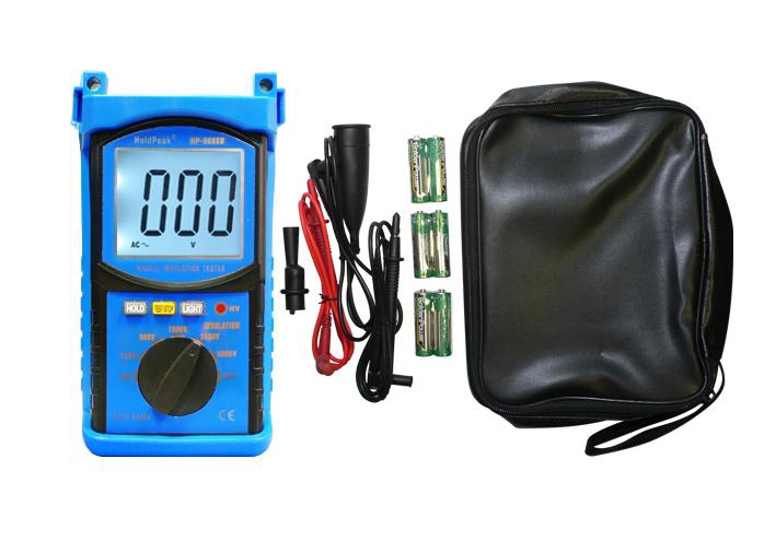 HOLDPEAK 6688B Digitális szigetelési ellenállás mérő 6688 B 44 220 Ft / db [2 db 2%] [5 db 3%] [10 db 5%] Gyártó: HOLDPEAK Cikkszám: S003_111336 Súly: 0,90 kg Átvétel: Ez a termék boltunkban személyesen is átvehető. HOLDPEAK 6688B digitális szigetelési ellenállás mérő 6688 BElektromos berendezések szigetelési ellenállásának mérésére szolgáló, digitális mérőműszer. Életvédelmi szempontból fontos mérésre alkalmas készülék. Alkalmazható elektromos berendezések összeszerelését követően, használt berendezések időszakos ellenőrzésére, vagy hibakereséskor.- digitális szigetelési ellenállás teszter.- Manuálisan állítható tesztelési feszültség (500V, 1000V, 2500V, 5000V).- Tesztelés kimenő feszültség mértéke: 90%-110%.- Maximális bemeneti feszültség: 750VAC.- 3.1/2 számjegyes LCD kijelző (69 mm x 55 mm), 35 mm-es karaktermagasság.- Automatikus kisütés.- Maximális értékkijelzés: 1999.- Magasfeszültség jelenlétének kijelzése LED-del.- Alacsony elemfeszültség kijelzés.- Utolsó mért érték kijelzőn tartása.- Szigetelési ellenállás mérési tartományok (automatikus váltás)/kijelzési felbontás/pontosság:- 1Mohm-200Mohm/+/-3%.- 200Mohm-10Gohm/+/-5%.- 10Gohm-200Gohm/+/-10%.- Minimum felbontás: 0.01Mohm.- VAC mérési tartomány/kijelzési felbontás/pontosság:- 1-750V/1mV/+/-2%.- VAC frekvenciatartomány: 40Hz-400Hz.- Mérőzsinór.- Szigetelt krokodilcsipesz pár.- Fekete, szövet hord táska.- Tápfeszültség: 9VDC Ni-Mh tölthető akumulátor.- Akkumulátortöltő tápegység tartozék.- Működési hőmérséklet: 0°C-40°C.- Működési páratartalom: maximum 80%.- Méretei: 221 mm x 126 mm x 79 mm.- Tömega: 900g (elemmel).- CE minősítés. Mennyiség db Kosárba tesz