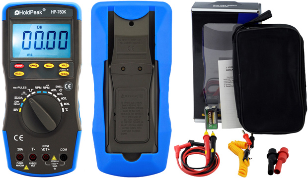 HOLDPEAK 760K Gépjármű diagnosztikai műszer 760 K 34 960 Ft / db [2 db 2%] [5 db 3%] [10 db 5%] Gyártó: HOLDPEAK Cikkszám: S003_110647 Súly: 0,32 kg Átvétel: Ez a termék boltunkban személyesen is átvehető. HOLDPEAK 760K Gépjármű diagnosztikai műszer 760 KGépjármű villamosságban használható, számos elektronikai mérésre alkalmas diagnosztikai műszer. Az általános multiméter funkciók (feszültség, áramerősség, ellenállás mérés) mellett a készülék alkalmas a gépjárművek fordulatszámának, 4-5-6-8 hengeres motorok zárásszögének mérésére, továbbá impulzus, frekvencia mérésre és dióda vizsgálatára. A mérési eredmények a nagy LCD kijelzőn nyomon követhetőek és leolvashatóak.- digitális diagnosztikai műszer gépjárművekhez.- Automatikus és manuális méréshatár váltás.- 3-3/4 számjegyes LCD kijelző, bekapcsolható háttérvilágítással.- 25 mm-es karakterek.- Méréshatár kijelzés.- Minimális és maximális értékhatár megadása.- Referencia érték mérése.- Utolsó mért adat tárolása funkció.- Automatikus negatív polaritás kijelzés.- Készülék automatikus kikapcsolása 30 perc tétlenség után.- Alacsony elemfeszültség kijelzés.- Olvasási idő: 3 olvasás/mp.- Fordulatszám (RPM) mérési tartomány/kijelzési felbontás/pontosság:- 600-4000, 4000-12000 (x10RPM)/1 RPM/+/-2.5%.- Impulzus mérési tartomány/pontosság:- 0.1ms-10.0ms/+/-2.5%.- Működési periódus mérési tartomány/kijelzési felbontás/pontosság:- 0.0%-90.0%/0.1%/+/-2.5%.- Zárási szög mérése 4,5,6 és 8 hengeres motoroknál.- 4 hengeres motor zárási szög mérési tartomány/kijelzési felbontás/pontosság:- 0°-90.0°/0.1°/+/-2.5%.- 5 hengeres motor zárási szög mérési tartomány/kijelzési felbontás/pontosság:- 0°-72.0°/0.1°/+/-2.5%.- 6 hengeres motor zárási szög mérési tartomány/kijelzési felbontás/pontosság:- 0°-60.0°/0.1°/+/-2.5%.- 8 hengeres motor zárási szög mérési tartomány/kijelzési felbontás/pontosság:- 0°-45.0°/0.1°/+/-2.5%.- Hőmérséklet mérési tartomány/kijelzési felbontás/pontosság:- -50°C - +1100°C/1°C/+/-2.5%.- VDC mérési tartomány/kijelzési felbontás/pontosság (automatikus méréshatár váltás):- 400mV/100uV/+/-2.5%.- 4V, 40V, 400V, 1000V/100uV/+/-0.8%.- Bemeneti ellenállás: nagyobb, mint 10Mohm.- Túlfeszültség védelem.- VAC mérési tartomány (automatikus méréshatár váltás): 400mV, 4V, 40V, 400V, 750V.- VAC kijelzési felbontás: 100uV.- VAC pontosság 400mV és 750V: +/-3%, 4V, 40V és 400V: +/-1.5%.- VAC frekvencia tartomány 400mV és 750V: 50Hz-100Hz, 4V, 40V és 400V: 50Hz-400Hz.- Bemeneti ellenállás: nagyobb, mint 10Mohm.- ADC mérési tartomány/kijelzési felbontás/pontosság:- 20A/10mA/+/-2%.- AAC mérési tartomány/kijelzési felbontás/pontosság:- 20A/10mA/+/-2%.- AAC frekvencia tartomány: 50Hz-400Hz.- Ellenállás mérési tartomány/pontosság (automatikus méréshatár váltás):- 400ohm/+/-1.5%.- 4kohm/+/-1%.- 40kohm/+/-1%.- 400kohm/+/-1%.- 4Mohm/+/-1%.- 40Mohm/+/-2.5%.- Frekvencia mérési tartomány/kijelzési felbontás/pontosság (automatikus méréshatár váltás):- 100Hz/0.01Hz/+/-0.5%.- 1kHz/0.01Hz/+/-0.5%.- 100kHz/0.01Hz/+/-0.5%.- 200kHz/0.01Hz/+/-0.5%.- Kapacitás mérési tartomány/kijelzési felbontás/pontosság (automatikus méréshatár váltás):- 40nF/10pF/+/-2.5%.- 400nF/10pF/+/-1.5%.- 4uF/10pF/+/-1.5%.- 40uF/10pF/+/-2.5%.- 100uF/10pF/+/-2.5%.- Dióda teszt, 1.5V/1.5mA.- Szakadásvizsgálat, hangjelzéssel.- Mérőzsinór.- 2 db szigetelt krokodilcsipesz.- Hőmérséklet mérő szonda.- 180°-ban kihajtható támasztó konzol.- Fekete, szövet műszer táska.- Tápfeszültség: 9VDC 6F22 elemről.- Működési hőmérséklet: 0°C-50°C.- Működési páratartalom: maximum 70%.- Méretei: 190 mm x 88.5 mm x 27.5 mm.- Tömega: 320g (elemmel).- CE minősítés. Mennyiség db Kosárba tesz