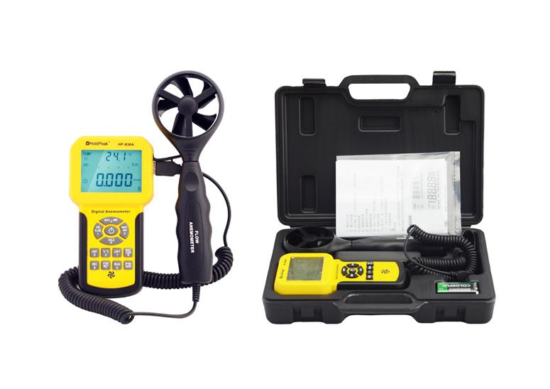 HOLDPEAK 846A Digitális szélerősség légáramlás- és hőmérsékletmérő 846 A 33 510 Ft / db [2 db 2%] [5 db 3%] [10 db 5%] Gyártó: HOLDPEAK Cikkszám: S003_111351 Súly: 0,32 kg Átvétel: Ez a termék boltunkban személyesen is átvehető. HOLDPEAK 846A digitális szélerősség légáramlás- és hőmérsékletmérő 846 AProfesszionális kézi szélsebesség, légáramlás és hőmérsékletmérő. Öt különböző sebességi, két légáramlási és két hőmérsékleti mértékegység beállításával gyakorlatilag a világon bárhol használható műszer. Ideális vitorlás sportok, magasban dolgozók számára, továbbá minden olyan területen, ahol fontos az aktuális szélerősség ismerete (pl. szélturbinák telepítésekor). A mért adatokat a műszer a saját memóriájában tárolja, ahonnan bármikor visszaolvashatja.- Aktuális, átlagos és maximális szélsebesség jelzés.- NTC hőmérsékletérzékelő.- Nagy méretű LCD kijelző, háttér megvilágítással.- Háttér megvilágítás kézi vagy automatikus kikapcsolása.- Műszer automatikus vagy kézi kikapcsolás.- 300 mérési eredmény tárolása a memóriában.- Utolsó mért érték kijelzőn tartása.- Választható szélsebesség mértékegység (m/s, Ft/m, knots, km/h ás Mph).- Szélsebesség mérési tartomány/kijelzési felbontás/pontosság:- 0-45 m/s/0.001 m/s/+/-3%.- 0-8800Ft/m/0.01/0.1/1Ft/m/+/-3%.- 0-88Knots/0.2Knots/+/-3%.- 0-140Km/h/0.001Km/h/+/-3%.- 0-100Mph/0.001/0.01Mph/+/-3%.- Mért eredmény átváltása másik mértékegységre.- Légáramlás mérése CMM (0-999900m3/min) és CFM (0-999900ft3/min) mértékegységekben.- Légáramlás mérési tartomány/kijelzési felbontás/terület:- 0-999900/0.001-100/0.001-9999.- Hőmérséklet kijelzés Celsius vagy Fahrenheit fokban.- Hőmérséklet mérési tartomány/kijelzési felbontás/pontosság:- 0°C - +45°C/0.1°C/+/-1°C.- 32°F - 113°F/0.1°F/+/-1.8°F.- Mind a műszer, mind a mérőfej állványra rögzíthető.- Ergonomikus kialakítás.- Mérőfej 60 cm-es spirál kábellel csatlakoztatható.- Műanyag hord táska.- Tápfeszültség: 9VDC 6F22 elemről.- Áramfelvétel: 18mA.- Működési hőmérséklet: 0°C - +50°C.- Működési páratartalom: maximum 80%.- Kézi műszer méretei: 163 mm x 85 mm x 34.5 mm.- Mérőfej méretei: 251 mm x 72 mm x 31 mm.- Tömega: 320.5g (elemmel).- CE minősítés. Mennyiség db Kosárba tesz