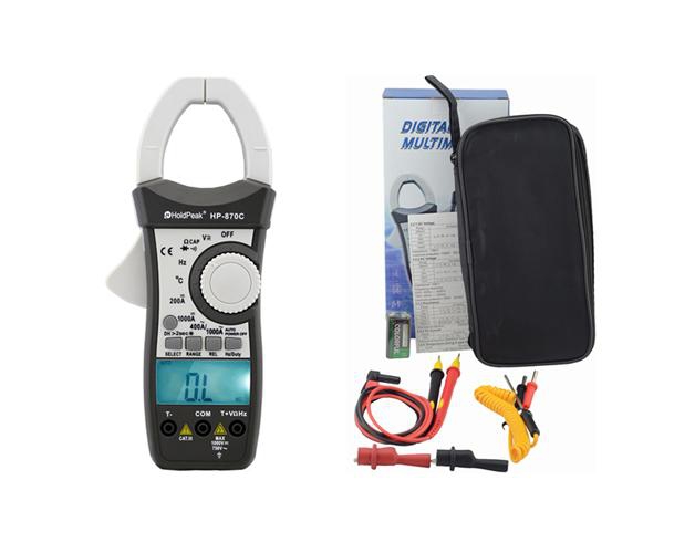 HOLDPEAK 870C Digitális lakatfogó multiméter 870 C 26 160 Ft / db [2 db 2%] [5 db 3%] [10 db 5%] Gyártó: HOLDPEAK Cikkszám: S003_110678 Súly: 0,33 kg Átvétel: Ez a termék boltunkban személyesen is átvehető. HOLDPEAK 870C digitális lakatfogó multiméter 870 CSpeciális kialakítású multiméter, mely képes a mért áramkör megszakítása nélkül a vezetékben folyó áram erősségét megmérni. Alapvető elektromos mértékegységek mérésére alkalmas, digitális, 2 LCD kijelzős multiméter. A két kijelzőnek köszönhetően szinte bármely pozícióban történő használat esetén leolvasható a mért érték. Egyenfeszültség, váltófeszültség, egyenáram, váltóáram, ellenállás, kapacitás, frekvencia és hőmérséklet mérésére alkalmas. További szolgáltatása a dióda tesztelő és szakadásjelző funkció.- digitális lakatfogó, multiméter.- Automatikus és manuális méréshatár váltás.- 3.3/4 számjegyes előlapi és alsó LCD kijelző, háttérfény világítás.- Maximális értékkijelzés: 3999.- Polaritás független mérés (fordított polaritás esetén - kijelzése).- Alacsony elemfeszültség kijelzés.- Automatikus és manuális be-/kikapcsolás.- Utolsó mért eredmény tartása.- Referencia érték mérése.- VDC mérési tartomány/kijelzési felbontás/pontosság:- 400mV/0.1mV/+/-0.8%.- 4V/1mV/+/-1%.- 40V/10mV/+/-1%.- 400V/100mV/+/-1%.- 1000V/1V/+/-1.5%.- Bemeneti ellenállás VDC mérési módban: 10Mohm (400mV-os méréshatárnál több, mint 100Mohm).- Túlfeszültség védelem.- VAC mérési tartomány/kijelzési felbontás/pontosság:- 4V/1mV/+/-1.5%.- 40V/10mV/+/-1.5%.- 400V/100mV/+/-1.5%.- 750V/1V/+/-2.5%.- Váltófeszültség frekvenciatartománya: 50Hz-400Hz (750V-os méréshatárnál: 50Hz-100Hz).- Bemeneti ellenállás VAC mérési módban: 10Mohm.- ADC mérési tartomány/kijelzési felbontás/pontosság:- 200A/0.1A/+/-3%.- 1000A /1A/0A-800A: +/-3.5%, 800A-1000A: +/-6.5%.- AAC mérési tartomány/kijelzési felbontás/pontosság:- 400A/0.1A/+/-3%.- 1000A /1A/0A-800A: +/-3.5%, 800A-1000A: +/-6.5%.- Váltóáram frekvenciatartománya: 50Hz-60Hz.- Ellenállás mérési tartomány/kijelzési felbontás/pontosság:- 400ohm/0.1ohm/+/-1.5%.- 4Kohm/1ohm/+/-1.2%.- 40Kohm/10ohm/+/-1.2%.- 400Kohm/100ohm/+/-1.2%.- 4Mohm/1Kohm/+/-1.2%.- 40Mohm/10Kohm/+/-2.5%.- Kapacitás mérési tartomány/kijelzési felbontás/pontosság:- 40nF/10pF/+/-6%.- 400nF/100pF/+/-3.5%.- 4uF/1nF/+/-3.5%.- 40uF/10nF/+/-3.5%.- 100uF/100nF/+/-6%.- Frekvencia mérési tartomány/kijelzési felbontás/pontosság:- 10Hz/0.01Hz/+/-1.2%.- 100Hz/0.1Hz/+/-1.2%.- 1000Hz/1Hz/+/-0.8%.- 10kHz/10Hz/+/-0.8%.- 100kHz/100Hz/+/-0.8%.- 1000kHz/1kHz/+/-0.8%.- 10MHz/10kHz/+/-2%.- Működési periódus mérési tartomány/pontosság:- 1%-99%/+/-0.5%.- Hőmérséklet mérési tartomány/kijelzési felbontás/pontosság:- -20°C - +150°C/1°C/+/-3%.- 150°C-300°C/1°C/+/-3%.- 300°C-1000°C/1°C/+/-3.5%.- Dióda teszt.- Szakadásvizsgálat, hangjelzéssel.- Fekete, szövet hord táska.- Hőmérsékletmérő szonda.- Mérőzsinór.- Tápfeszültség: 9VDC 2 db 6F22 elemről.- Működési hőmérséklet: 0°C-40°C.- Működési páratartalom: maximum 80%.- Méretei: 225 mm x 77 mm x 45 mm.- Tömega: 330g (elemmel).- CE minősítés. Mennyiség db Kosárba tesz