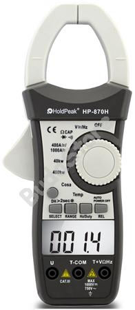 HOLDPEAK 870H Digitális lakatfogó 114840 40 060 Ft / db [2 db 2%] [5 db 3%] [10 db 5%] Gyártó: HOLDPEAK Cikkszám: S003_114840 Átvétel: Ez a termék boltunkban személyesen is átvehető. HOLDPEAK 870H Digitális lakatfogó 114840 Digitális lakatfogó, VAC, VDC, AAC, ADC, ellenállás, kapacitás, frekvencia, hőmérséklet. Speciális kialakítású multiméter, mely képes a mért áramkör megszakítása nélkül a vezetékben folyó áram erősségét megmérni. Alapvető elektromos mértékegységek mérésére alkalmas, digitális, LCD kijelzős multiméter. Egyenfeszültség, váltófeszültség, váltóáram, ellenállás mérésére alkalmas. További szolgáltatása a dióda tesztelő és szakadásjelző funkció. - Digitális lakatfogó, multiméter. - Automata méréshatár váltás. - 3.5 számjegyes előlapi LCD kijelző, háttérfény világítás. - Maximális értékkijelzés: 3999. - Polaritás független mérés (fordított polaritás esetén - kijelzése). - Alacsony elemfeszültség kijelzés. - Manuális kikapcsolás. - Utolsó mért eredmény tartása. - Túlfeszültség védelem. - VDC mérési tartomány: 400mV - 1000V. - VAC mérési tartomány: 400mV - 750V. - Váltófeszültség frekvenciatartománya: 50Hz-100Hz. - AAC mérési tartomány: 400A - 1000A. - Váltóáram frekvenciatartománya: 50Hz-60Hz. - ADC mérési tartomány: 400A - 1000A. - Ellenállás mérési tartomány: 400ohm - 40Megaohm. - Kapacitás mérési tartomány: 40nF - 200uF. - Hőmérséklet mérési tartomány: -20°C - 1000°C. - Frekvencia mérési tartomány: 5,12Hz- 100KHz. - Dióda teszt. - Mérőpofa nyitási távolság: 45mm - Teljesítmény mérési tartomány: 20kW - 400kW - Szakadásvizsgálat, hangjelzéssel. - Fekete, szövet hord táska. - Mérőzsinór. - Tápfeszültség: 9VDC 2 db 6F22 elemről. - Működési hőmérséklet: 0°C-40°C. - Működési páratartalom: maximum 75%. - Méretei: 225mm x 97mm x 40mm. - Súlya: 450g (elemmel). - CE minősítés. Mennyiség db Nem rendelhető