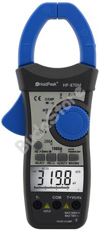 HOLDPEAK 870M Digitális lakatfogó multiméter 114843 36 090 Ft / db [2 db 2%] [5 db 3%] [10 db 5%] Gyártó: HOLDPEAK Cikkszám: S003_114843 Súly: 0,50 kg Átvétel: Ez a termék boltunkban személyesen is átvehető. Digitális lakatfogó, VAC, VDC, AAC, ADC, ellenállás, kapacitás 4000uF-ig, frekvencia. Speciális kialakítású multiméter, mely képes a mért áramkör megszakítása nélkül a vezetékben folyó áram erősségét megmérni. Alapvető elektromos mértékegységek mérésére alkalmas, digitális, LCD kijelzős multiméter. Egyenfeszültség, váltófeszültség, váltóáram, ellenállás mérésére alkalmas. További szolgáltatása a dióda tesztelő és szakadásjelző funkció. - Digitális lakatfogó, multiméter. - Automata méréshatár váltás. - 3.5 számjegyes előlapi LCD kijelző, háttérfény világítás. - Maximális értékkijelzés: 3999. - Polaritás független mérés (fordított polaritás esetén - kijelzése). - Alacsony elemfeszültség kijelzés. - Automatikus kikapcsolás. - Utolsó mért eredmény tartása. - Túlfeszültség védelem. - VDC mérési tartomány: 40mV - 1000V. - VAC mérési tartomány: 40mV - 750V. - Váltófeszültség frekvenciatartománya: 50Hz-100Hz. - AAC mérési tartomány: 200A - 1000A. - Váltóáram frekvenciatartománya: 50Hz-60Hz. - ADC mérési tartomány: 200A - 1000A. - Ellenállás mérési tartomány: 400ohm - 40Megaohm. - Kapacitás mérési tartomány: 40nF - 4000uF. - Hőmérséklet mérési tartomány °C / F megjelenítési lehetőséggel: -20°C - 1000°C. - Frekvencia mérési tartomány: 10Hz- 10Mhz - Dióda teszt. - Szakadásvizsgálat, hangjelzéssel. - Fekete, szövet hord táska. - Mérőzsinór. - Tápfeszültség: 9VDC 2 db 6F22 elemről. - Működési hőmérséklet: 0°C-40°C. - Működési páratartalom: maximum 75%. - Méretei: 225mm x 97mm x 40mm. - Súlya: 450g (elemmel). - CE minősítés. Mennyiség db Kosárba tesz