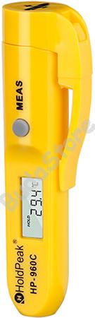 HOLDPEAK 960C Mini infravörös hőmérsékletmérő 120198 9 000 Ft / db [2 db 2%] [5 db 3%] [10 db 5%] Gyártó: HOLDPEAK Cikkszám: S003_120198 Átvétel: Ez a termék boltunkban személyesen is átvehető. Mini infravörös hőmérsékletmérő, -30°C - +275°C, C°/F° kijelzés, toll kivitelű. Rendkívül kicsi méretű, akár zsebben is hordható lézer infravörös hőmérséklet mérő, felületi hőmérséklet gyors, ellenőrző mérésének elvégzésére. - Lézeres infravörös hőmérsékletérzékelő. - Mérési tartomány: -30°C - +275°C, -22°F - +527°F. - Mérési pontosság: 0.4°C. - Optimális tesztelési távolság: 2-3 cm. - Mérési idő: 500ms. - Emisszió: 0.95. - Ajánlott környezeti hőmérséklet a legpontosabb méréshez: 23°C - 28°C. - 1.9 inch LCD kijelző. - Kijelzés 0.1°C, 0.1°F felbontással. - °C és °F kijelzés. - Alacsony elemfeszültség kijelzés. - Toll formájú kivitel, zseb csíptetővel. - Tápellátás: 2 db LR44 gombelem. - Páratartalom: 10% - 95%. - Automatikus kikapcsolás. - Utolsó mért adat tárolása. - Méretek: 84 x 16 x 20 mm. - RoHS tanúsítvány. - CE minősítés. Mennyiség db Kosárba tesz