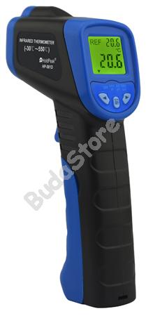 HOLDPEAK 981D Infravörös hőmérsékletmérő 114817 11 210 Ft / db [2 db 2%] [5 db 3%] [10 db 5%] Gyártó: HOLDPEAK Cikkszám: S003_114817 Átvétel: Ez a termék boltunkban személyesen is átvehető. Infravörös hőmérsékletmérő, -50°C/+550°C, +/-2%, C° és F° kijelzés. Az infravörös hőmérséklet érzékelés segítségével érintés nélkül mérhető meg szilárd vagy folyékony tárgyak hőmérséklete. A pisztoly szerű kialakítás lehetővé teszi, hogy pontosan az adott terület hőmérsékletét tudjuk megmérni. A külső szonda bemenetre csatlakoztatott érzékelővel közvetlenül a felületen is megmérhető a hőmérséklet. A mérési eredményeket a jól látható LCD kijelzőről olvashatja le. - Infravörös hőmérsékletérzékelő lencse. - LCD kijelző. - Lézeres célzó. - Háttérvilágítás. - Mérési válaszidő: 500msec. - Emisszió: 0.95. - Mérési tartomány/pontosság: - -50°C-550°C / +/-2%. - Hőmérséklet kijelzés Celsius vagy Fahrenheit fokban. - Pisztoly alakú kiképzés. - Autómata kikapcsolás. - Tápfeszültség: 9VDC 6F22 elemről vagy akkumulátorról. - Működési hőmérséklet: 0°C - +40°C. - Működési páratartalom: 10%-95% (nem kicsapódó). - Méretei: 146mm x 80mm x 38mm. - Súlya: 130g. - CE minősítés. Mennyiség db Kosárba tesz
