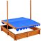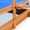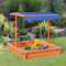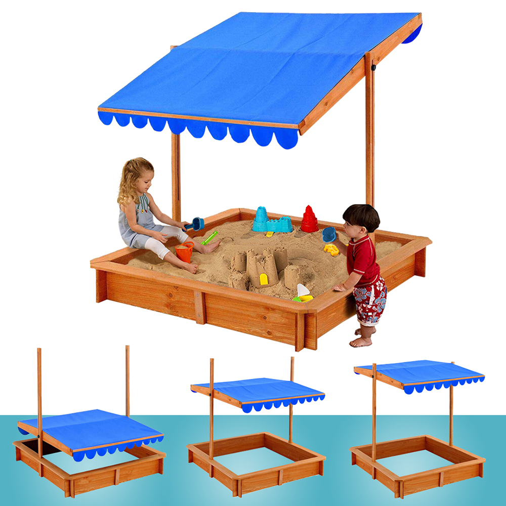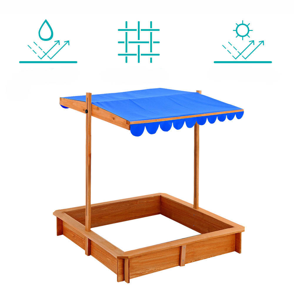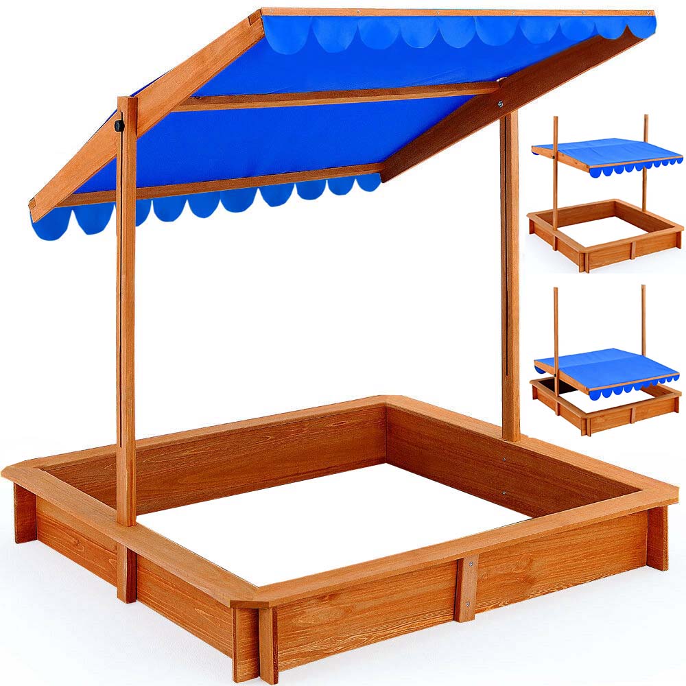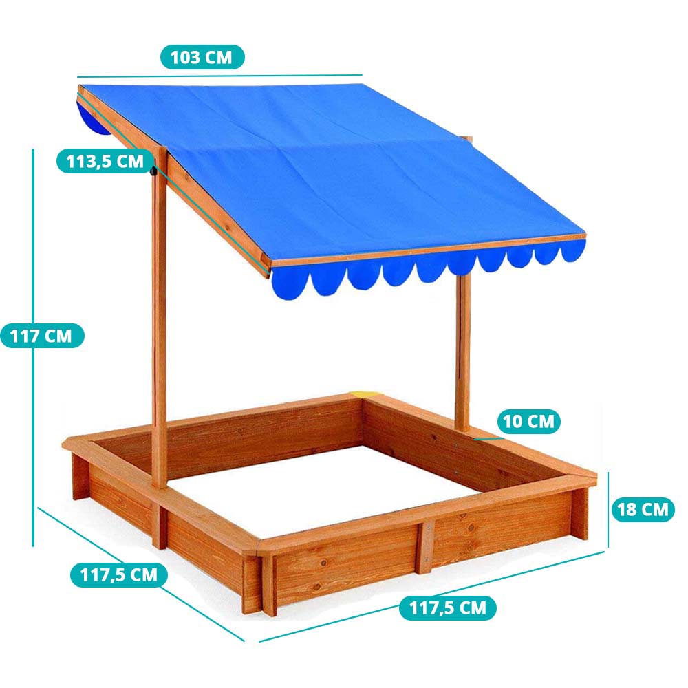 A fa homokozó leereszthető tetővel rendelkezik, ami nem csak a nap ellen véd, de teljesen leeresztve a tető megvédi a homokozót a szennyeződésektől. A kerti homokozó igazi szabadtéri szórakozást nyújt a gyerekeknek és az árnyékoló miatt a homok is tiszta marad és a nap sem vethet véget a játéknak. Mivel összeszerelése egyszerű, így gyorsan birtokba is vehetik a gyerekek. A tető magassága állítható (max 110 cm-ig). A homokozó 4 oldalán fa ülődeszkák futnak végig, így kényelmesen lecsücsülhetnek játék közben, akár a szülők is (teherbírása 80 kg.) A tető teljesen leengedhető a homokozóra, így használat után megvédi a különböző szennyeződésektől. A sarkokra műanyag élvédők erősíthetők fel.