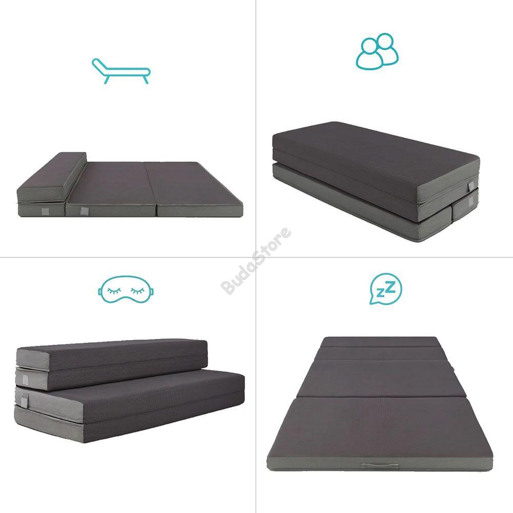 Vidd magaddal bárhová hordozható, összehajtható matracunkat hordtáskában a pihentető az alváshoz,  akár neked van rá szükséged vagy esetleg vendég érkezik. Nem csupán fekhelyként funkcionálhat, összehajtva ülőhelynek vagy háttámlás "kanapénak" is használhatod. Összehajtható ezért kis helyen is elfér, hordtáskájával pedig bárhová magaddal viheted. 10 cm vastag poliuretán anyagból készült, így biztosan kényelmes pihenést biztosít.