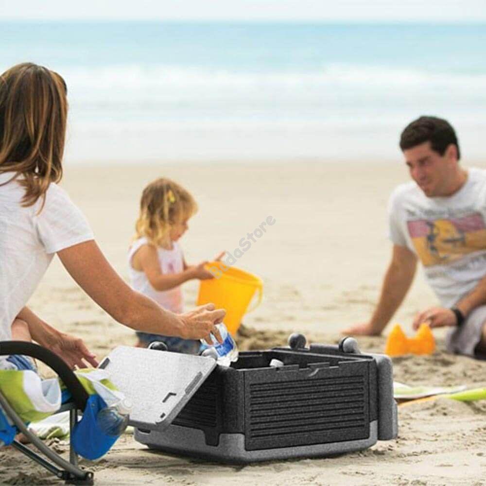 Hőtartó tároló dobozunk akár 6 órán keresztül bent tartja a hideget vagy meleget, ideális hosszabb utakra, nyaralásra, kempingezéshez, strandra. Pár mozdulattal kinyitható és összecsukható így kevés helyet foglal az autóban! Akár 25 doboz sört is tárolhatsz benne. Az oldalán lévő fülek segítségével pedig bárhová magaddal viheted. Akár a bevásárlásban is segítséget nyújt mivel gyümölcsöket, húsokat is tudsz benne tárolni. A hűtő hatást fokozhatod ha jégakkukat is teszel bele.