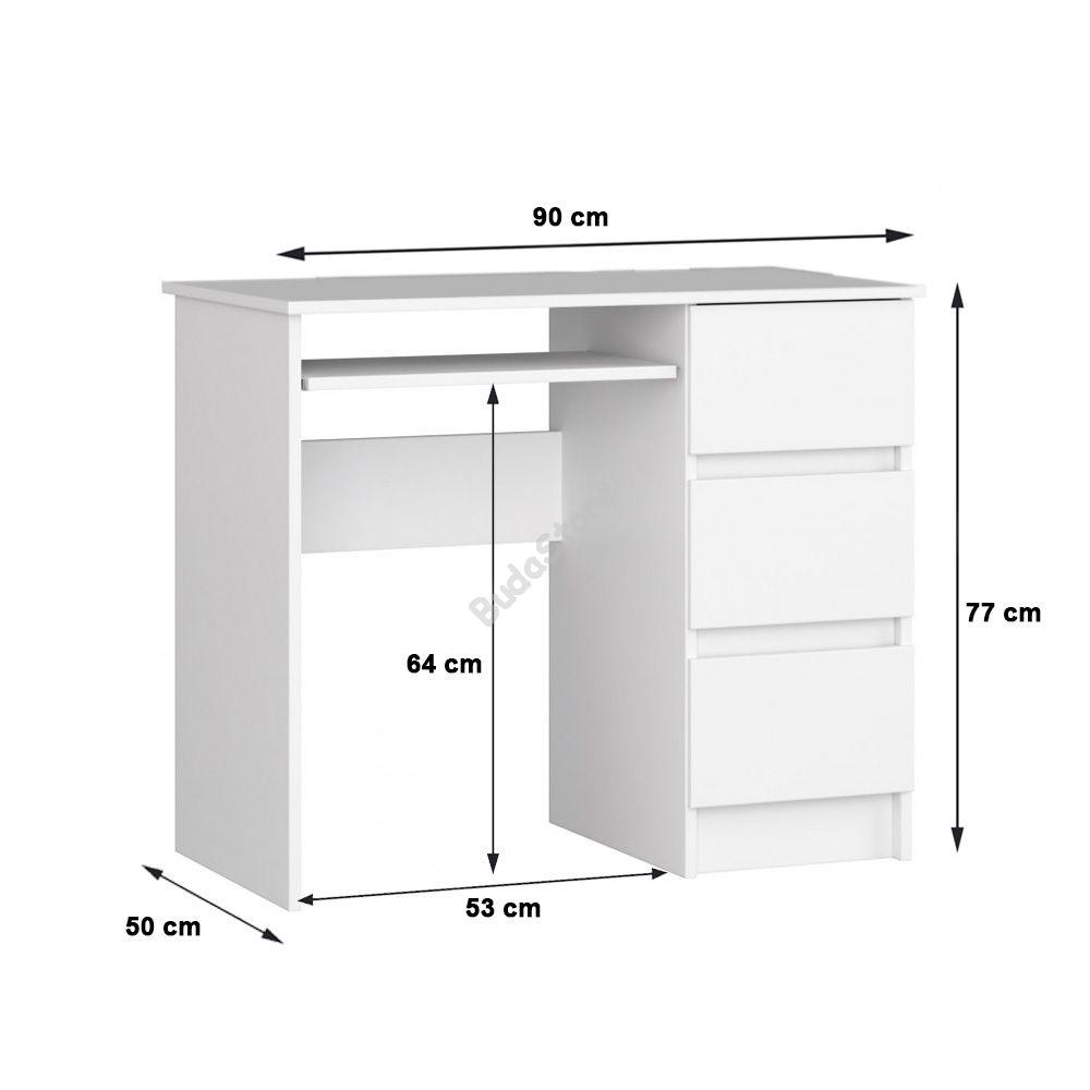Ez a szolid és letisztult stílusú íróasztal könnyedén beilleszthető bármely modern hangulatú helyiségbe. Méretének köszönhetően nem foglal el sok helyet, mégis kényelmesen tarthatjuk rajta laptopunkat, monitorunkat, a külön billentyűzet számára kialakított polcon pedig helytakarékosan tárolhatjuk klaviatúránkat. Tökéletes választás lehet gyerekszobába, tanulósarokba, vagy egy otthoni dolgozó rész kialakításához. Az íróasztal jobb oldalára végig fiókok kerültek, melyek füzetek, mappák és egyéb dokumentumok tárolására alkalmasak. A termék 3 színben kapható.