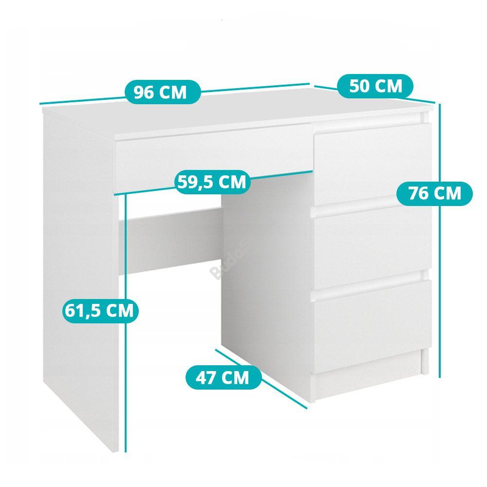 Bármilyen stílusú helyiségbe beillesztheted és nem foglal el sok helyet. Fiókos kialakításának köszönhetően, oldalsó tárolóiban kényelmesen tárolhatod benne az irodai kiegészítőidet, papírjaidat és mappáidat. Az asztal alatti fiókban pedig a rendszeresen használatban lévő kiegészítők kerülhetnek, így minden kéznél lesz amire szükséged van.  Tökéletes választás lehet gyermeked szobájába egy tanuló sarok kialakításakor.