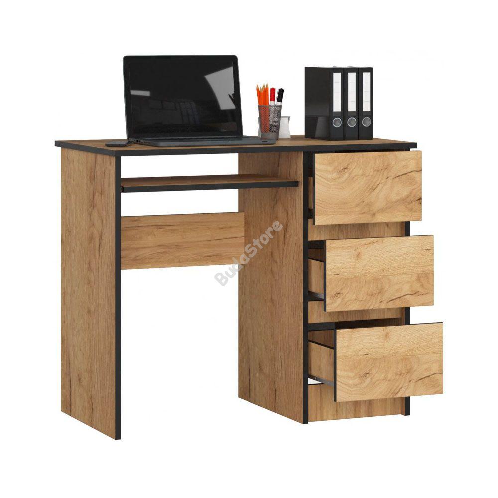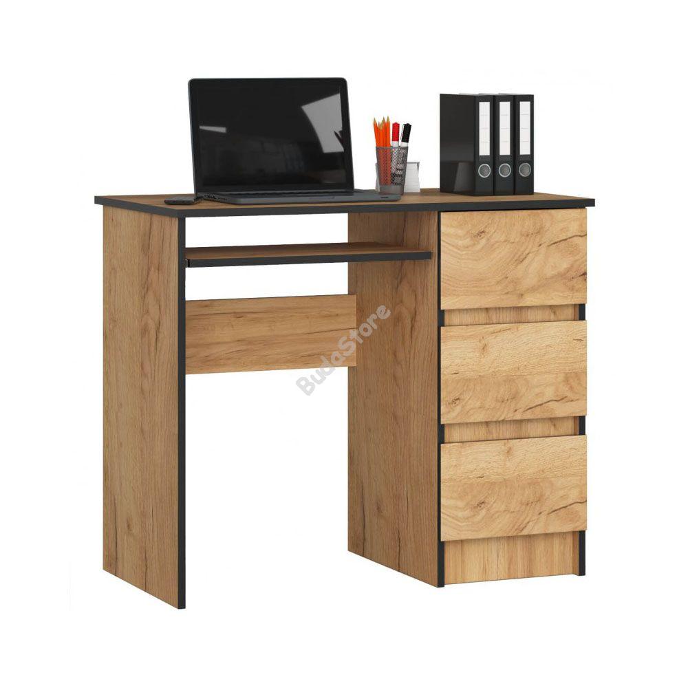 Ez a szolid és letisztult stílusú íróasztal könnyedén beilleszthető bármely modern hangulatú helyiségbe. Méretének köszönhetően nem foglal el sok helyet, mégis kényelmesen tarthatjuk rajta laptopunkat, monitorunkat, a külön billentyűzet számára kialakított polcon pedig helytakarékosan tárolhatjuk klaviatúránkat. Tökéletes választás lehet gyerekszobába, tanulósarokba, vagy egy otthoni dolgozó rész kialakításához. Az íróasztal jobb oldalára végig fiókok kerültek, melyek füzetek, mappák és egyéb dokumentumok tárolására alkalmasak. A termék 3 színben kapható.