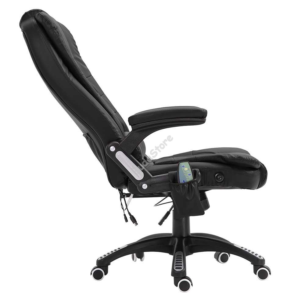 A masszírozó irodai szék ötvözi a klasszikus stílust a tökéletes kényelemmel. Modern és elegáns kialakításának köszönhetően igazán esztétikus eleme lehet egy helyiségnek, kiváló otthoni és irodai használatra. 6 különböző masszírozó funkció és 3 erősségi fokozat közül választhatunk, amiket a távirányító segítségével állíthatunk be. A használat során kiválaszthatjuk melyik testrészünkön szeretnénk masszírozást végezni, 8 pontos masszázs funkcióval van ellátva. A következő területek masszírozására van lehetőség: hát, derék, comb és láb. A forgószék dönthető és magassága állítható, amivel még kényelmesebbé tehetjük.