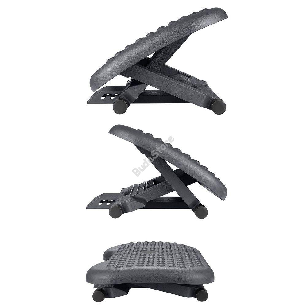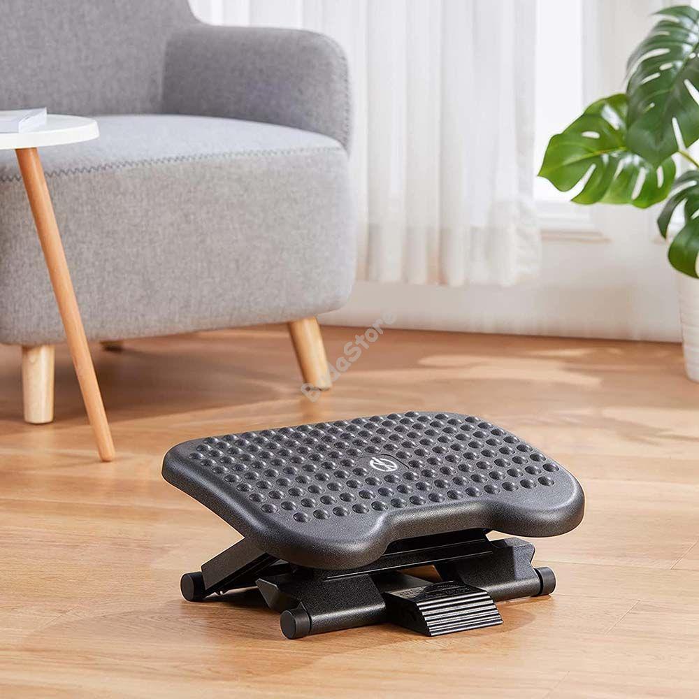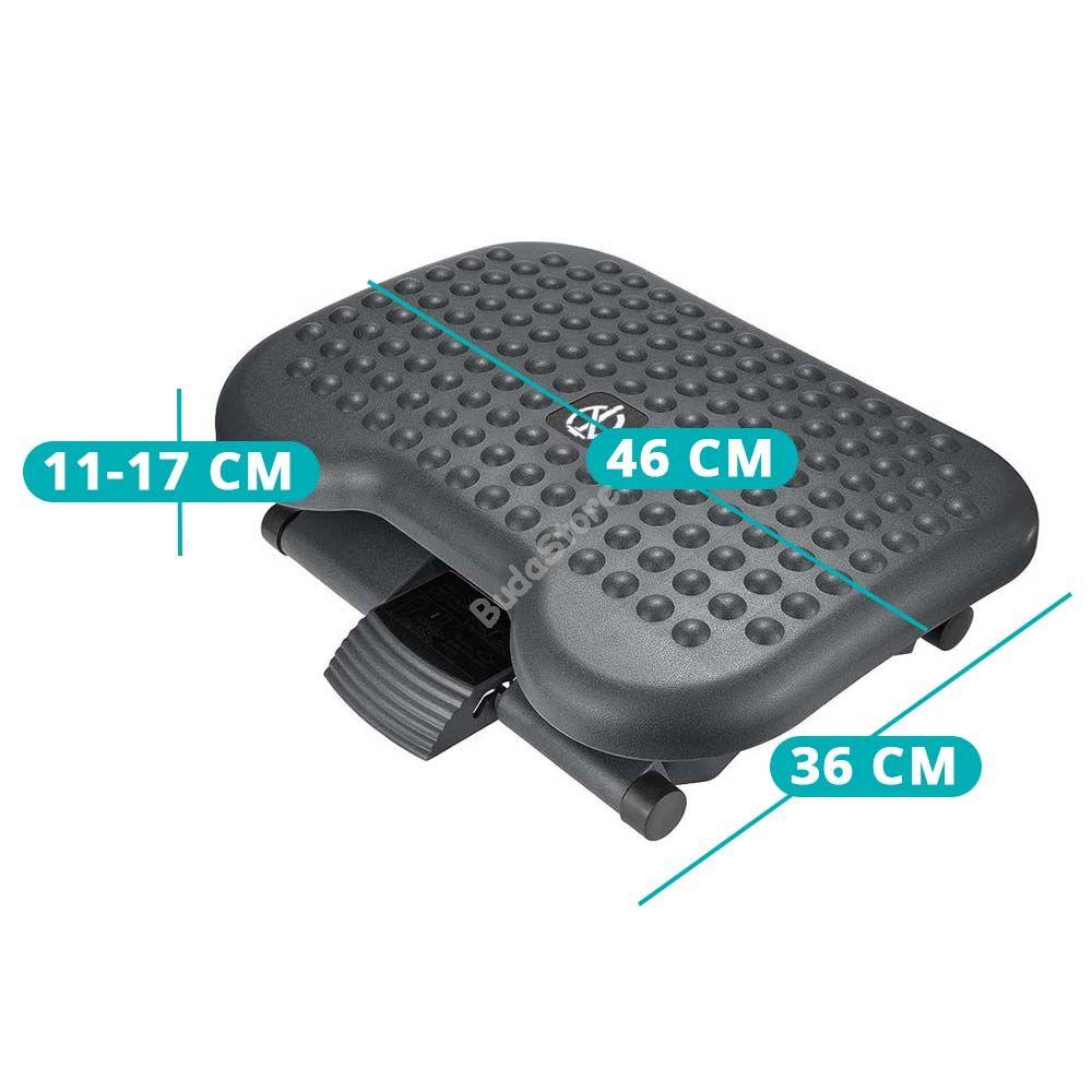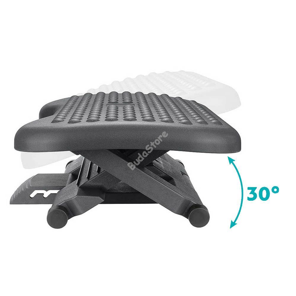 Irodai lábtámaszunkkal pihentetheted lábad a hosszan tartó ülés során, akár irodában akár otthon vennéd hasznát. Bordázott felületének köszönhetően lábad nem fog lecsúszni használat közben. Javíthatja a vérkeringést és segíthet a megfelelő testhelyzet felvételében és megtartásában. 3 pozícióban állítható (11-14-17 cm) magasságával biztosan megtalálod a neked legmegfelelőbbet. 30°-os szögben dönthető a maximális kényelem érdekében.