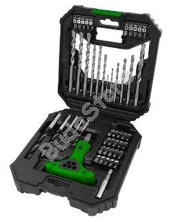 ISKRA ERO 50-RÉSZES FÚRÓ ÉS BIT KÉSZLET FST050 4 000 Ft / db [2 db 2%] [5 db 3%] [10 db 5%] Gyártó: ISKRA Cikkszám: S052_IS12616 Vonalkód (EAN13): 3830042566755 Súly: 1,06 kg HSS-Fúró: (6 db) 2 / 3 / 4 / 5 / 6 / 8 mm Betonfúró: (6 db) 5 / 2x 6 / 2x 8 / 10 mm Fafúró: (5 kosov) 4 / 5 / 6 / 8 / 10 mm, Karbonstahl Csavarhúzó toldalékok 25 mm: (30 db) Laposfejű bit (SL): 3 / 4 / 5 / 6 / 7 Torx bit (T): 10 / 15 / 20 / 25 / 30 / 35 / 40 Imbusz bit (M): 3 / 4 / 5 / 5 / 6 / 6 Négyzet alakú bit (S): 1 / 2 / 2 / 3 Csillagfejű bit (PH): 0 / 1 / 2 / 3 Pozidriv bit (PZ): 0 / 1 / 2 / 3 Racsnis csavarhúzó markolat: (1 db) Mágneses toldószár: (1 db) Vízmérték: (1 db) • Csomagolás: Bőrönd • Bőrönd méret (mm): 191 (H) x 500 (SZ) x 175 (M) Külső doboz Külső doboz EAN kódja: 3830042566762 • Csomagolás mérete (mm): 365 (H) x 200 (SZ) x 215 (M) • Mennyiség: 8 db/doboz • Nettó súly: 8,0 kg • Bruttó súly: 8,5 kg Mennyiség db Kosárba tesz