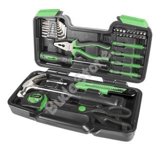 ISKRA ERO SZERSZÁMKÉSZLET 39-RÉSZES HTWR-39 6 190 Ft / db [2 db 2%] [5 db 3%] [10 db 5%] Gyártó: ISKRA Cikkszám: S052_IS10754 Vonalkód (EAN13): 3830042564690 Súly: 2,13 kg • Kombinált fogó: 150 mm (8") • Szeghúzó kalapács: 227g (8 oz) • Tapétavágó kés: 18 mm • Mérőszalag: 3 m x 16 mm • Rozsdamentes acél olló • Imbuszkulcs: 1,5 - 10 mm • Precíziós Csavarhúzó: 2 x Csillag (0,1); 2 x lapos (2,4mm, 3,0mm) • Mágneses fogantyú: 6,35 mm (1/4) • Mágneses toldószár: 60 mm • 25 mm-es Toldalékok (bitek): (20db) • Laposfejű bit (SL): 3, 4, 5, 6 • Csillagfejű bit (PH): 1,2,3 • Pozidriv bit (PZ): 1, 2, 3 • Imbusz bit (M): 3, 4, 5, 6 • Torx bit (T): 10, 15, 20, 25, 27, 30 • Csomagolás: Bőrönd • Bőrönd méret(mm): 320 (H) x 80 (SZ) x 185 (M) • Nettó súly: 2,0 kg • Bruttó súly: 2,125 kg Külső doboz Külső doboz EAN kódja: 3830042564706 • Csomagolás mérete (mm): 390 (H) x 335 (SZ) x 335 (M) • Mennyiség: 8 db/doboz • Nettó súly: 16,0 kg • Bruttó súly: 17,0 kg Mennyiség db Kosárba tesz