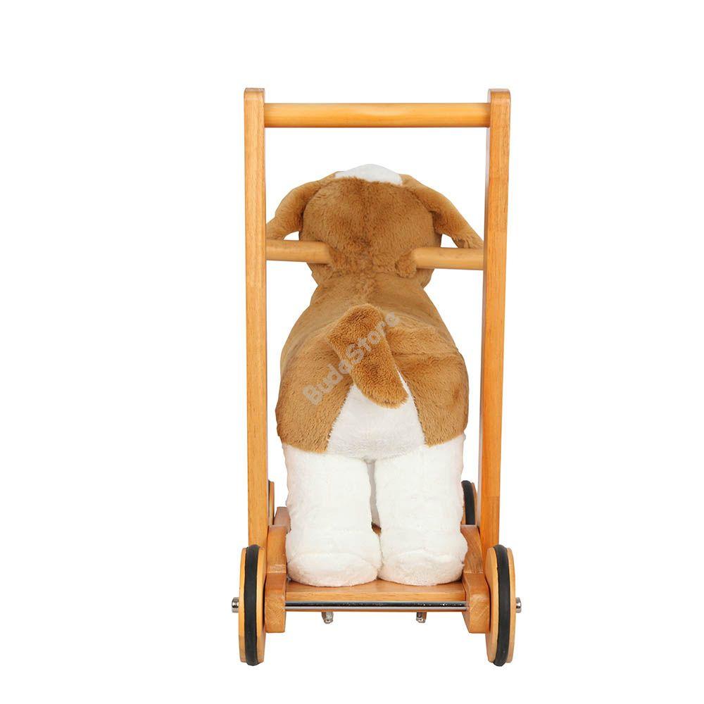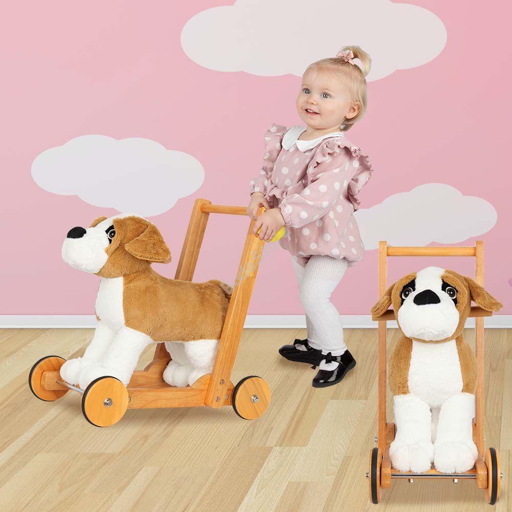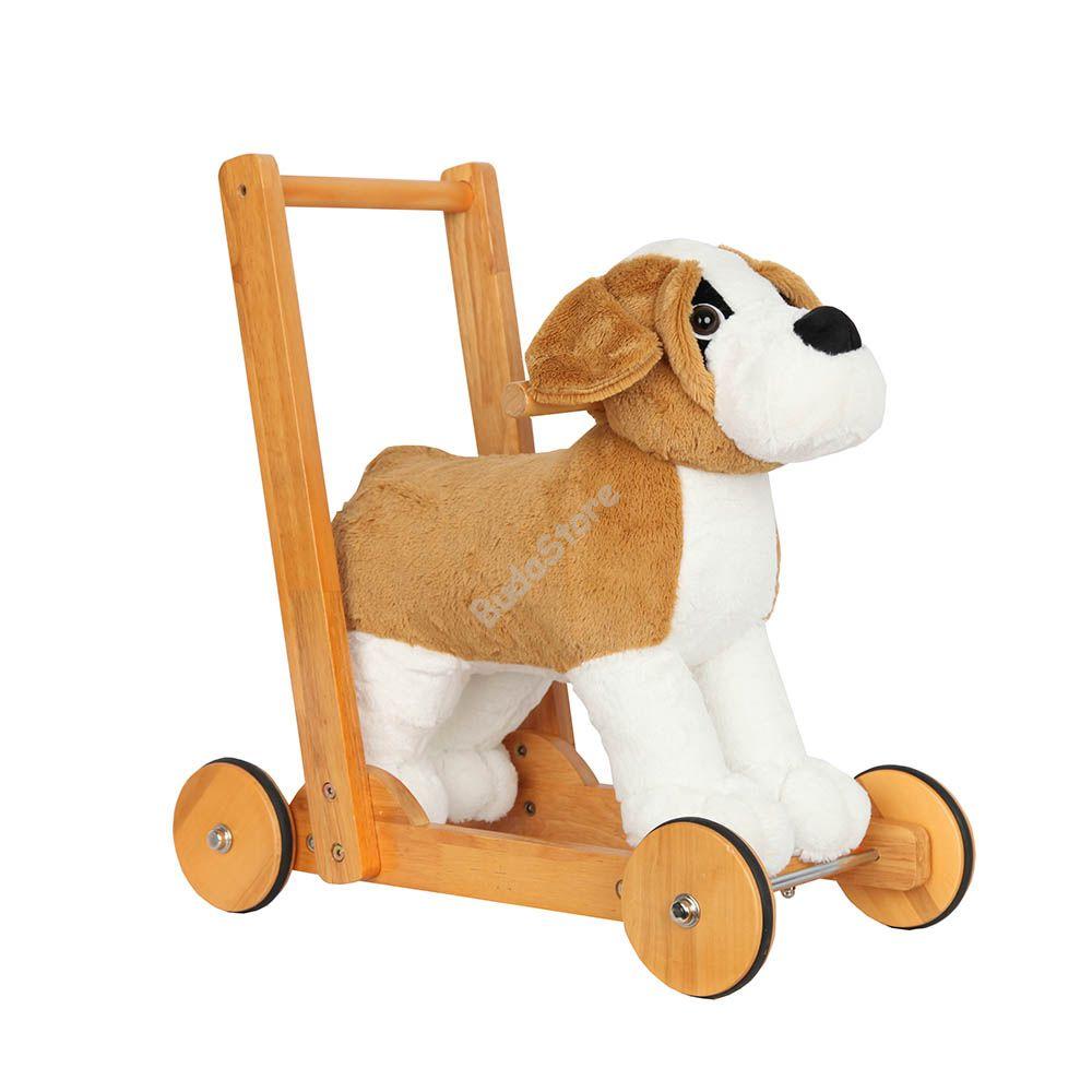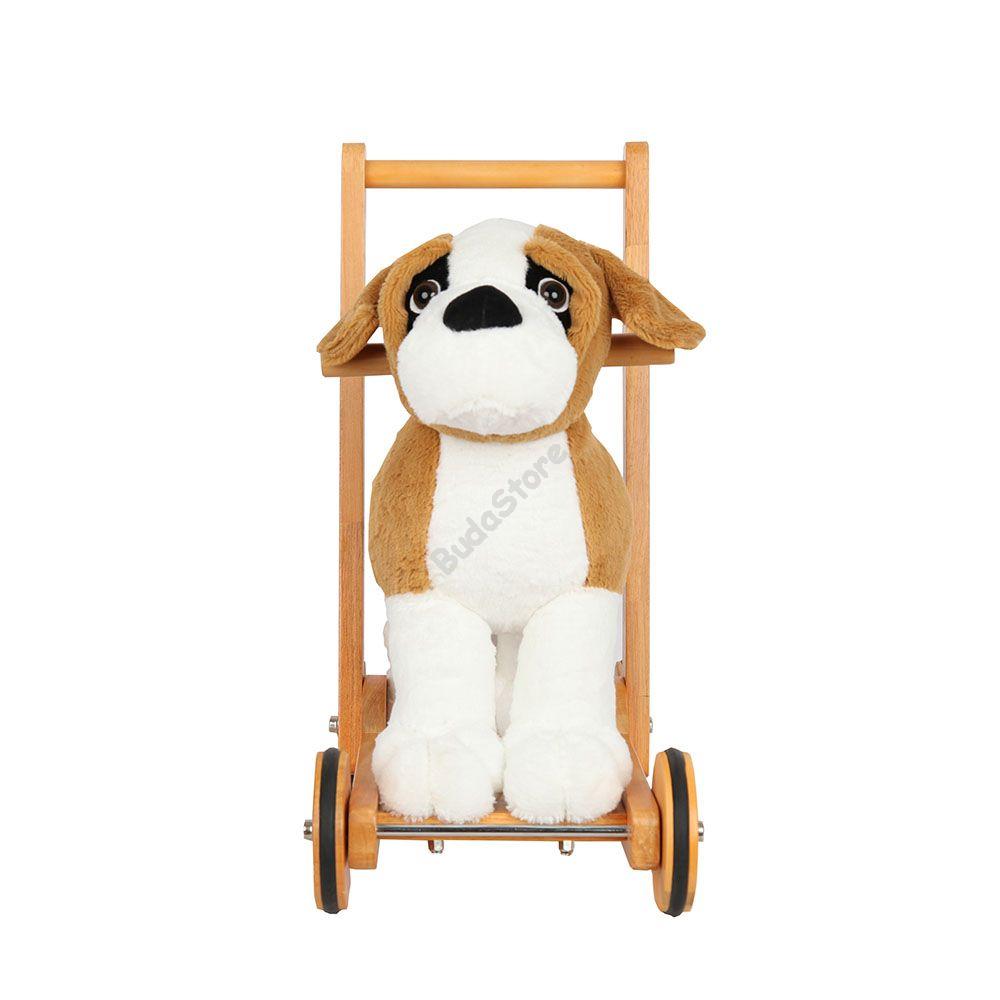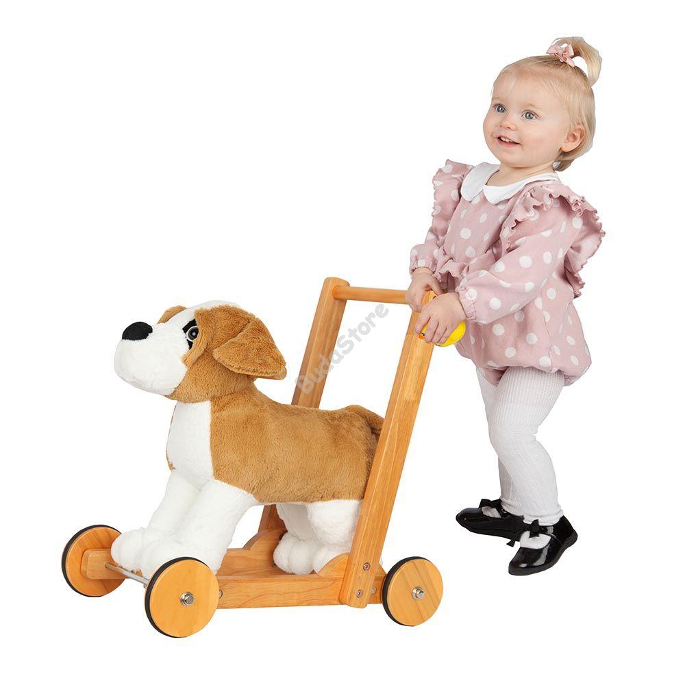 Segítsd elő gyermeked fejlődését a járássegítő "Bernard" kutyával. Puha plüs borításával szinte biztosan a kicsik kedvence lesz. Stabil fa vázának köszönhetően biztonságosan sétálhat vele gyermeked. A kutya fülét megnyomva zenét játszhatsz le a kicsiknek.