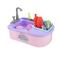 A rózsaszín típusú mosogató vízzel tölthető, elemek behelyezés után a csap megnyitható.