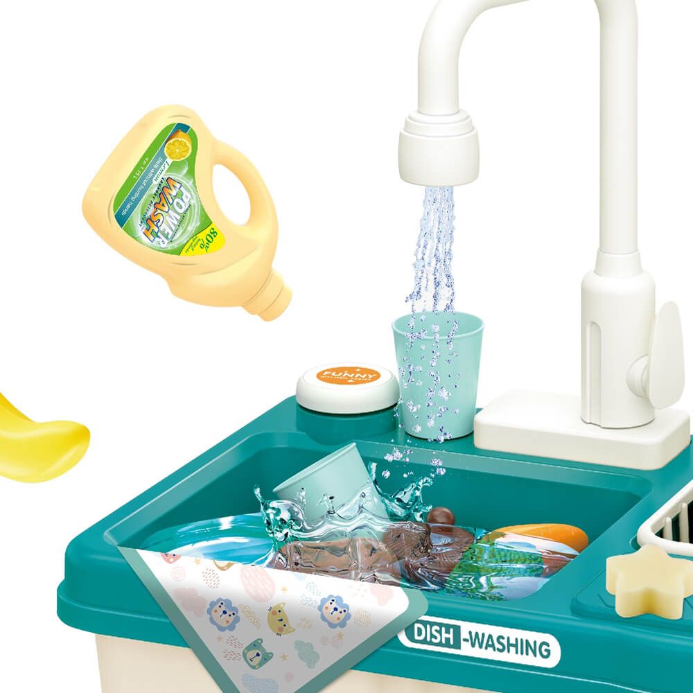 Játék közben fejlődik a kézügyesség, és az élethű tartozékoknak köszönhetően a kreativitás is szárnyra kaphat. A mosogatóból jövő vízsugár segítségével pedig könnyedén elsajátíthatják, hogyan lehet alaposan megmosni a gyümölcsöket, illetve makulátlanná varázsolni az edényeket.