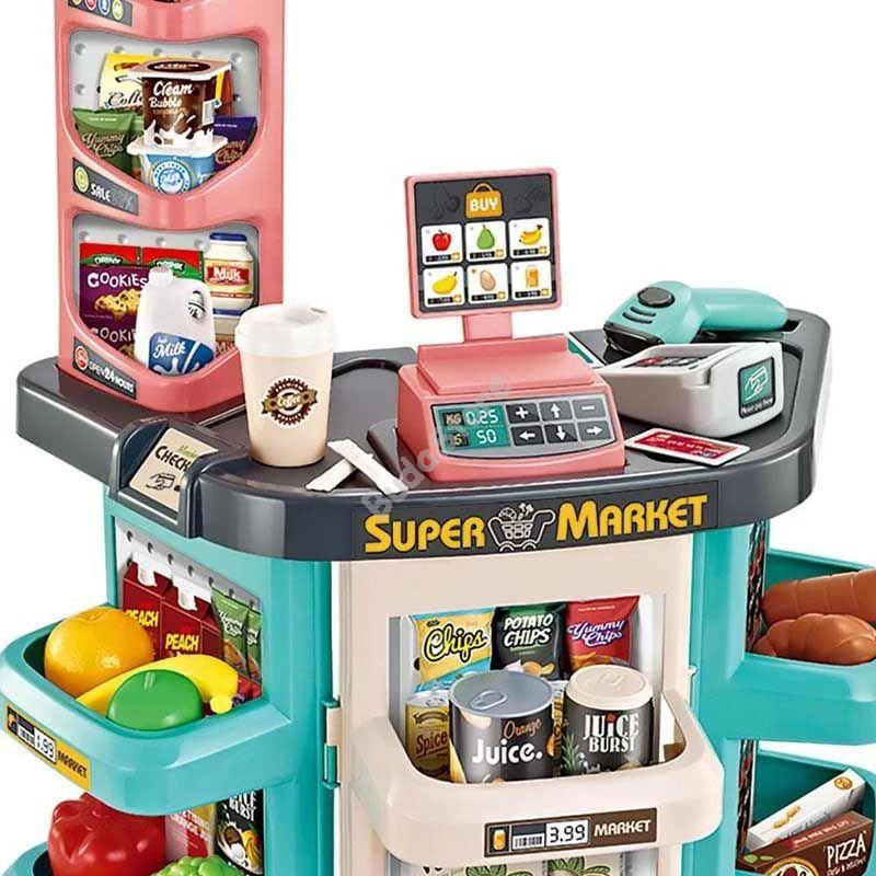 Játék szupermarketünkkel igazán izgalmas lesz a bevásárlás. A gyerekek számos kiegészítővel játszhatnak, közöttük élelmiszerekkel, gyümölcsökkel, péksüteményekkel. A játékélményt egy bevásárlókocsi fokozza, melyet tologathatnak a gyerekek. A szetthez tartozik kódolvasó, mérleg és bankkártya terminál is. A játék egyszerűen összeállítható, így hamar birtokba vehetik a kicsik. Kiváló ajándék lehet szülinapra, karácsonyra, illetve bármikor, amikor meglepnéd gyermekedet.
