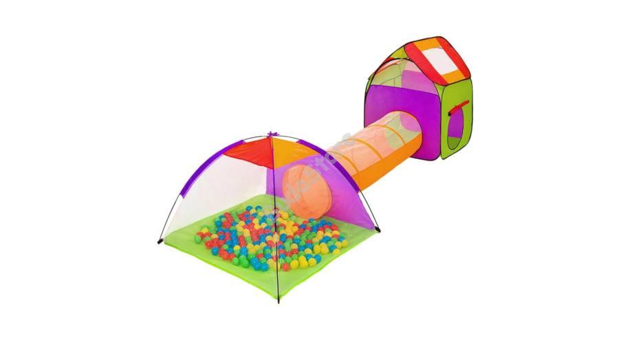 Így lehet saját játszóteretek otthon, a siker garantált! Játszósátrunk 3 részből áll, 2 különböző alakú és méretű sátor részből, valamint egy összekötő mászóalagútból. A termékhez ajándékba adunk egy praktikus tárolózsákot, valamint kb 200 db színes, műanyag labdát. (A labdák darabszámában kb. 5% eltérés előfordulhat!) A sátor és az alagút anyaga átlátszó, így figyelheted gyermekedet játék közben.