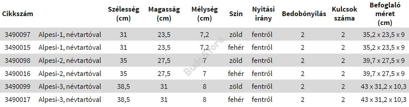 JKH Postaláda ALPESI-1 záras horganyzott zöld 3490097 11 490 Ft / db [2 db 2%] [5 db 3%] [10 db 5%] Gyártó: JKH Cikkszám: S032_3490097 Súly: 1,50 kg JKH Postaláda ALPESI-1 záras horganyzott zöld 3490097 Szín: zöld ; kültéri ; névtartóval ; Biztonsági zárral ; Anyag: acél lemez ; Bedobónyílás: 2 ; csomagolási méret: 35 x 25 x 9 cm Termék jellemzők: Szélesség: 31 cm Magasság: 23,5 cm Mélység: 7,2 cm Szín: zöld Nyitási irány: fentről Bedobónyílás: 2 db Kulcsok száma: 2 db Befoglaló méret: 35,2 x 23,5 x 9 cm Mennyiség db Kosárba tesz