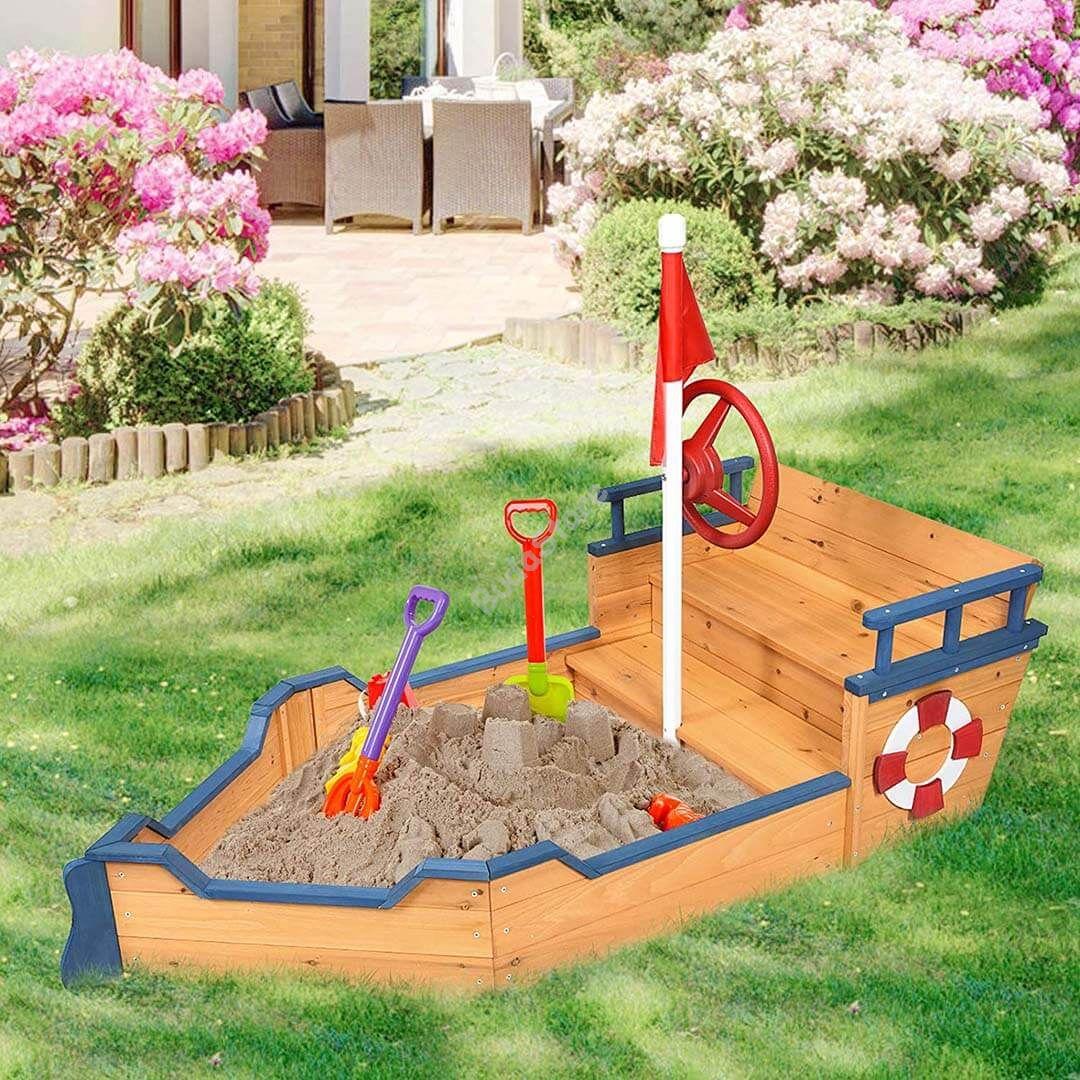 A kalózhajó külsejű homokozó új szintre emeli a kerti játékélményt a gyerekek számára. Nem csupán egy egyszerű homokozó szerepét tölti be, de külsejének köszönhetően igazi kalandot élhetnek át a gyerekek játék közben.