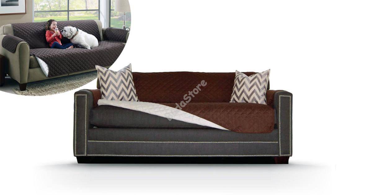 A nappali a lakás központja. Egy fárasztó nap után leülünk a kanapéra, pihenünk, beszélgetünk és a gyerekek is szívesen játszanak rajta. Az idő elteltével a szövetek szennyeződnek, megkopnak. A kiömlő italok, esetleg a háziállatok hulló szőre csak ront a helyzeten. A kétoldalú kanapévédő takaró megvédi a bútorokat a szennyeződésektől, mosógépben könnyen tisztítható. Egyik oldala sötétbarna, másik oldala fehér színű. Anyaga cseppálló, hogy még inkább védje kanapédat a szennyeződésektől, ezáltal merevebb, kevésbé rugalmas, mégis kényelmes.