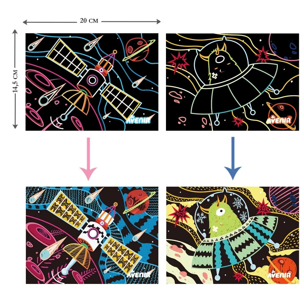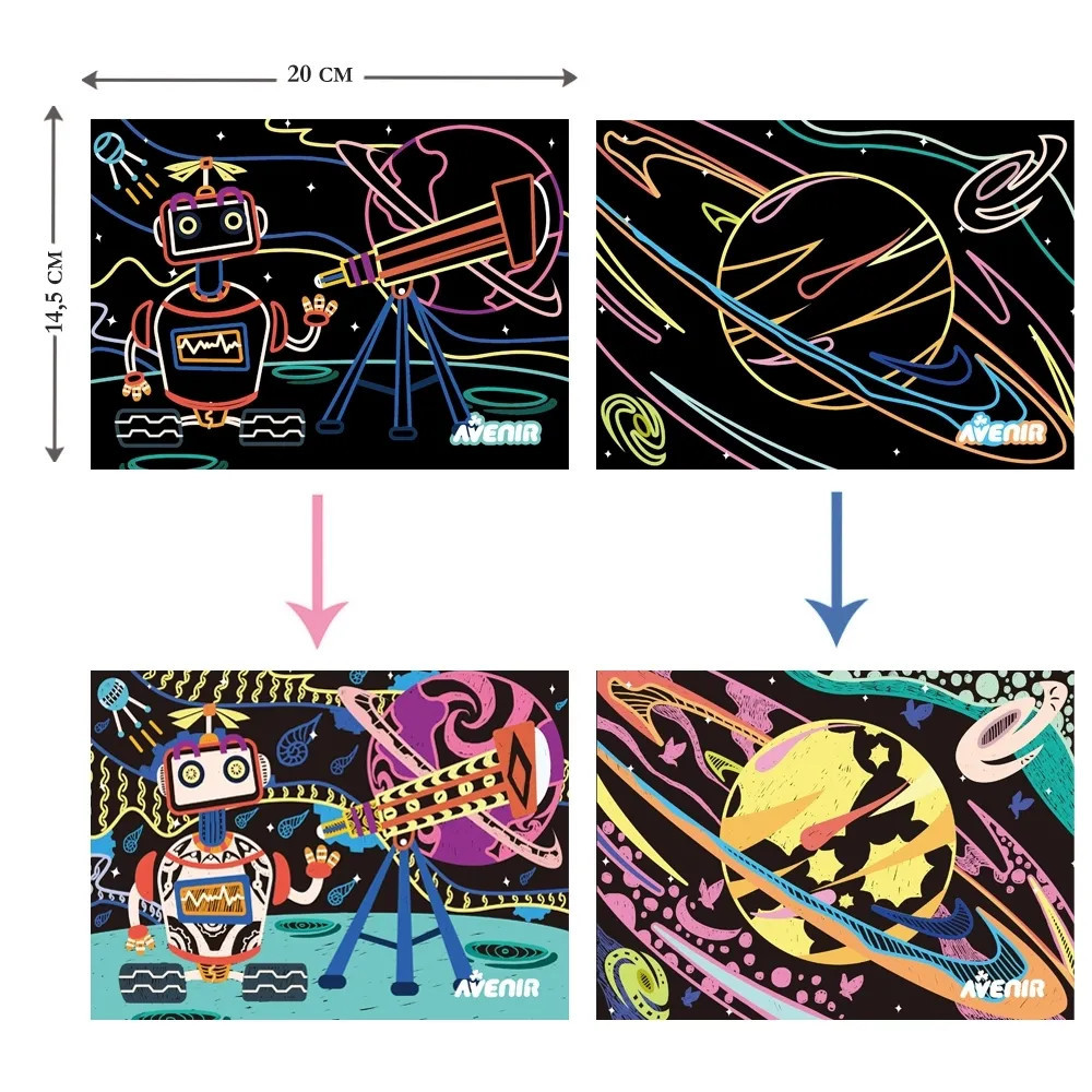 Karckép technika Űrhajó Avenir AvenirCH191678 2 490 Ft / db [2 db 2%] [5 db 3%] [10 db 5%] Gyártó: AVENIR KIDS Cikkszám: S140_AvenirCH191678 Vonalkód (EAN13): 6920773316785 Súly: 0,12 kg Különleges karckép technika az Avenir Kids márkától űrhajók és világűr témakörben!Karcold meg a fekete papírlapokat, hogy színes términtákat hozzhass létre.A készlet 8 db képet tartalmaz.Márka: AvenirAjánlott életkor: 3+ Jellemzők Korcsoport: 3 éves kortól Kinek ajánljuk: Fiúknak Mennyiség db Kosárba tesz