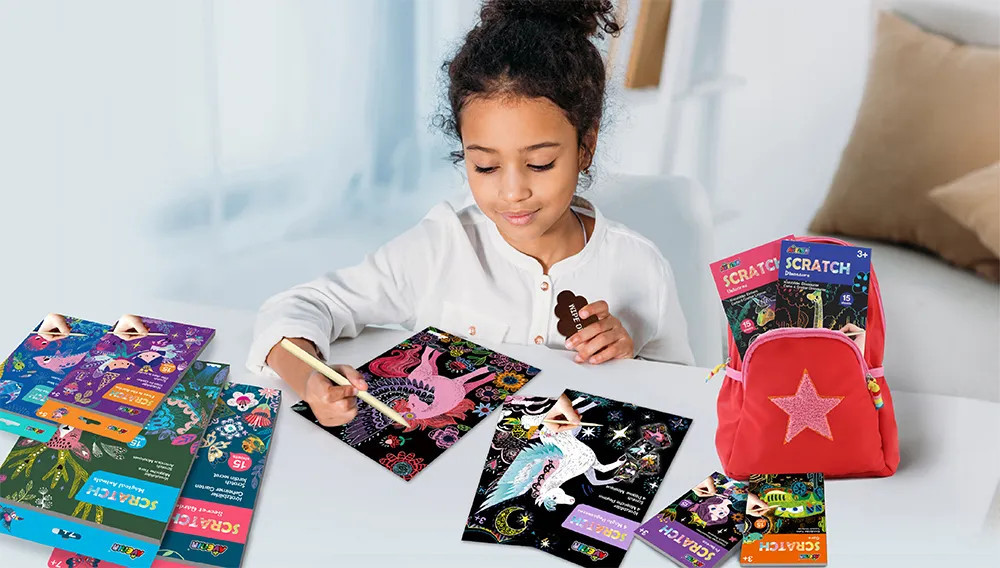 Karckép technika Varázslatos pegazusok Avenir AvenirCH221541 1 690 Ft / db [2 db 2%] [5 db 3%] [10 db 5%] Gyártó: AVENIR KIDS Cikkszám: S140_AvenirCH221541 Vonalkód (EAN13): 6920773315412 Súly: 0,08 kg Az Avenir Varázslatos pegazusok karckép készlete már egészen kicsi kortól fejleszti a kézügyességet.Egyedülálló kreatív technika, melynek lényege, hogy a sötét papírlapokat megkarcolva vibráló színek jelennek meg, ez adja ki a formákat és a mintákat. A karceszköz minden egyes mozdulattal eltávolít a fekete festékrétegből és feltárja a színes képet. Remek készlet a rajzolás fejlesztésére és a képzelet kibontakoztatására! Jellemzők Korcsoport: 3 éves kortól Kinek ajánljuk: Lányoknak Mennyiség db Kosárba tesz