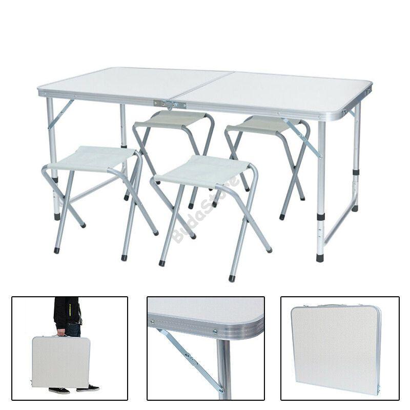 Kemping szettünk egy összecsukható és hordozható asztalból és 4 székből áll. Használhatod kirándulások, kempingezések alkalmával, de akár otthon a teraszon egy összejövetel alkalmával is. Az asztal 3 magasságba állítható, így gyerekeknek és felnőtteknek is kényelmes lehet.