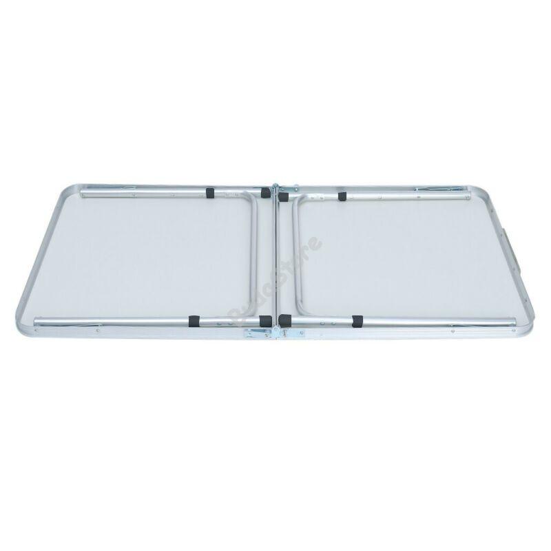 Az összecsukott asztalon fogantyúk segítik a még egyszerűbb hordozhatóságot.