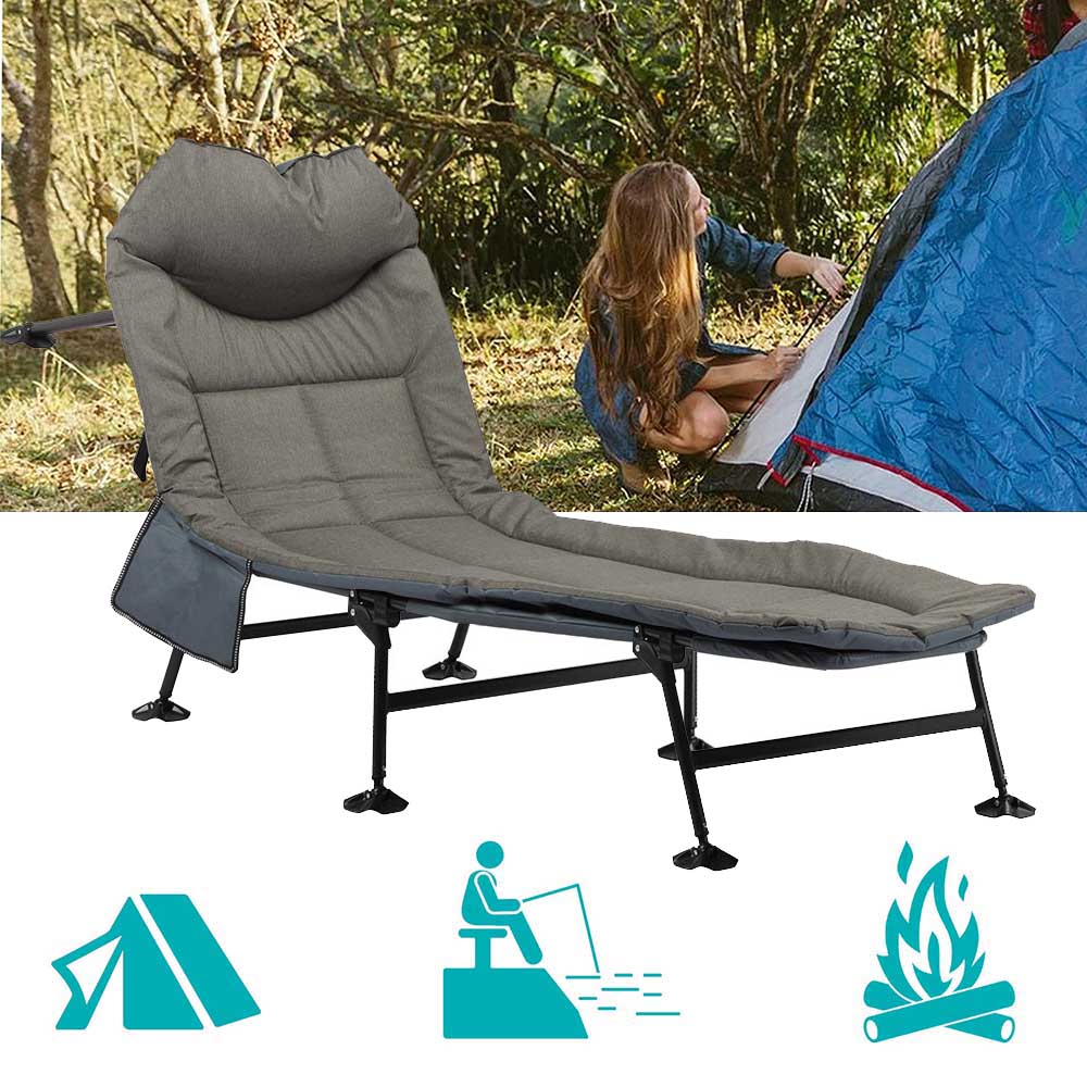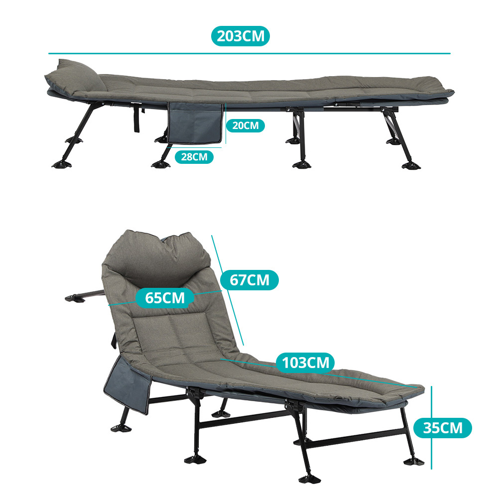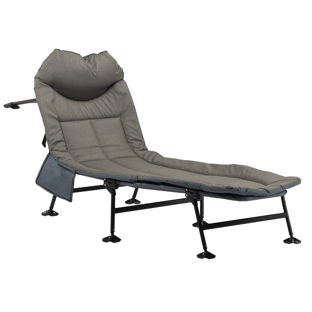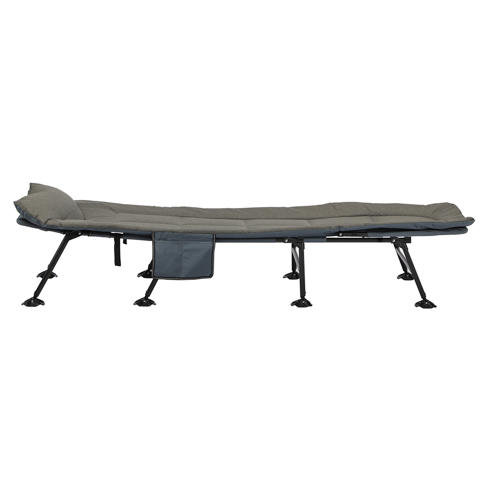 Legyen szó túrázásról vagy horgászásról, elengedhetetlen a megfelelő mennyiségű és minőségű pihenés, így ha ez gyakori program számodra érdemes fontolóra venni ennek a kényelmes kempingágynak a beszerzését. Stabil vázának és széles tapadó koronggal ellátott lábainak köszönhetően egyenetlen talajon is megfelelő stabilitást biztosít, és biztosan nem borul majd fel. 4 pozícióban állítható háttámlája a legnagyobb kényelmet biztosítja. Az ágyhoz tartozó tároló zsebbe bele tehetsz mindent, amire csak szükséged lehet.
