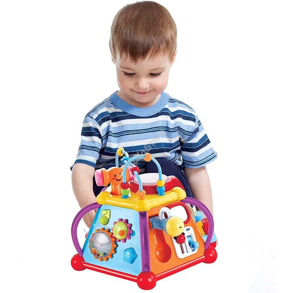 A készségfejlesztő játékcentrummal játékosan tanulhatnak a gyerekek. Rengeteg külünböző játékot, funkciót találsz egyetlen csomagban. A finommotorikus képességek fejlesztése mellett javítható a szem-kéz koordináció kapcsolata, a memória, a koncentráció és az ügyesség. A gyerekek könnyebben megtanulhatják a színeket és számokat. Alkalmas azoknak a babáknak, akik már érdeklődnek a színek, formák, hangok iránt. A játékcentrum 18 hónapos kortól javasolt.
