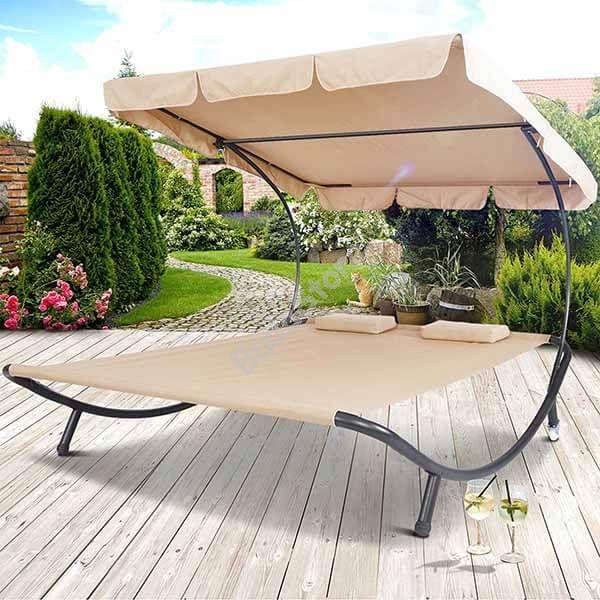 Kétszemélyes napozóágy árnyékolóval világosbarna