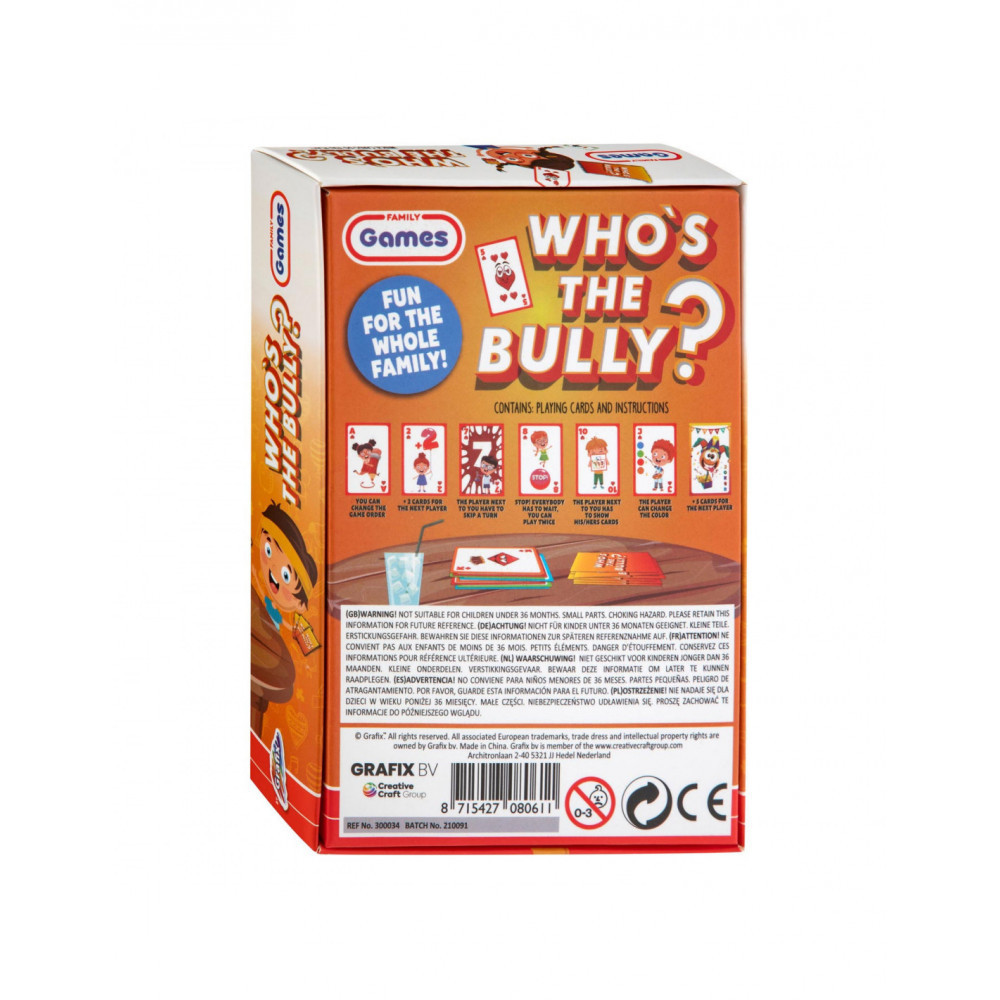 Ki lesz a zsarnok? kártyajáték, Grafix CA300034 1 290 Ft / db [2 db 2%] [5 db 3%] [10 db 5%] Gyártó: GRAFIX Cikkszám: S140_CA300034 Vonalkód (EAN13): 8715427080611 Súly: 0,50 kg Ki lesz a zsarnok?Ez a kártyajáték az egész család számára remek szórakozást nyújt! Forgasd te a legügyesebben a lapokat és próbálj minél előbb kimenni a körből!Színre-szín, számra-szám, de nem feledd, akció kártyákkal is tele van a pakli!2-4 játékossal játszható 3 éves kortól.Egy játék körülbelül 20 percig tart. Jellemzők Korcsoport: 3 éves kortól Kinek ajánljuk: Lányoknak és fiúknak Mennyiség db Kosárba tesz