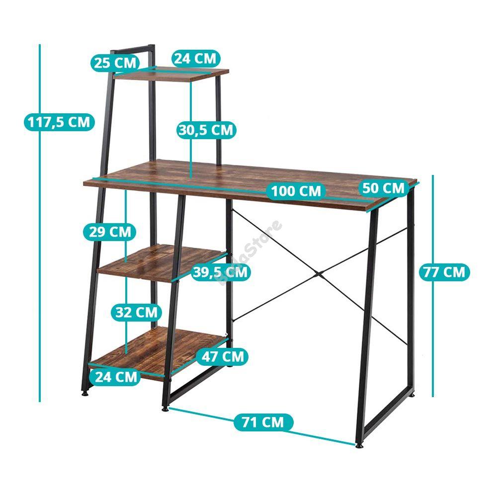 Ha egy praktikus és helytakarékos megoldásra van szükséged a munkához, akkor remek választás lesz neked asztalunk. Az asztallap mérete pont megfelelő, elegendő helyet biztosít a laptopodnak és a munkaeszközeidnek, hogy kényelmesen elférj. 4 db polc teszi lehetővé, hogy további holmikat tárolhass, akár iratokat, rendszerezőket, kosarakat, vagy dekorációs eszközöket is.