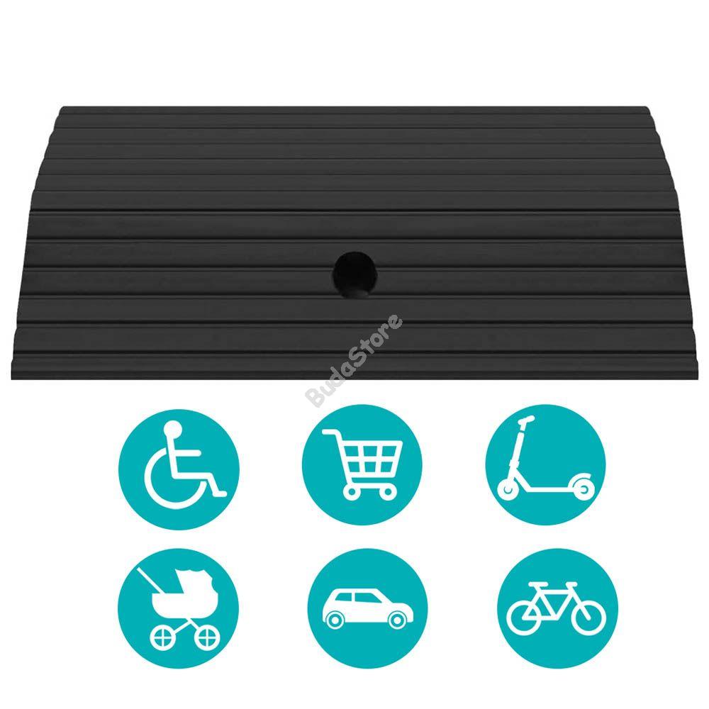 Küszöbrámpánk kifejezetten vezetékek, kábelek és kiálló szegélyek takarására és védelmére lett tervezve. Sokoldalúan használható, alkalmas kábelek elfedésére és védelmére, autók és egyéb járművek haladásának megkönnyítésére illetve akadálymentesítésre. Csúszásmentes gumi anyagból készült, két csavarral stabilan rögzíthető bármilyen stabil felületre. Ha a rámpát a talajhoz szeretnéd rögzíteni, a csomagban található két csavarral megteheted. Ebben az esetben elsődlegesen fúrj két lyukat a talajba, ügyelve arra, hogy a lyukak közti távolság megegyezzen a küszöbrámpán található lyukak távolságával. A termék teherbírása maximum 2 tonna.