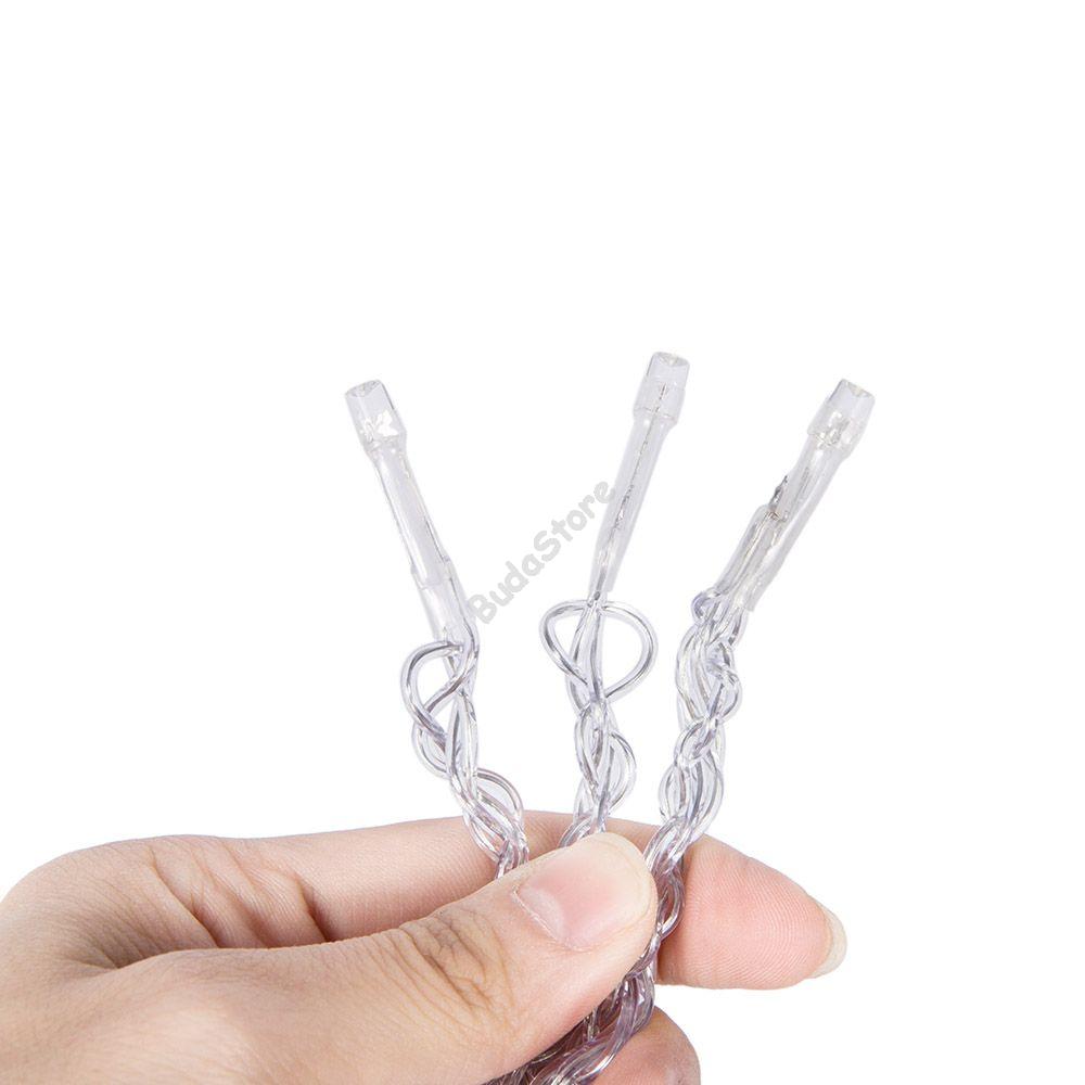 Jégcsap fényfüggönyünket használhatod kül- és beltéren is, ablakba, korlátra, ereszcsatornára rögzítve. A felső szálról különböző hosszúságú füzérek lógnak le, rajtuk 3,5 és 7 db LED-del. Hidegfehér színe, kialakítása és elrendezése miatt különleges látványt nyújt.