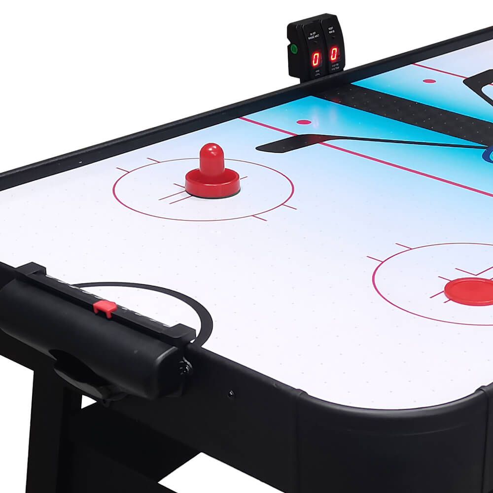 Tökéletes választás, ha Ti is odavagytok a pörgős és izgalmas játékokért, legyen szó családi rendezvényről vagy baráti összejövetelről. Letisztult, modern kialakításnak köszönhetően bármilyen helyiségben megállja a helyét, kompakt mérete révén pedig könnyedén elfér nappalidban vagy akár a garázsban is. A beépített digitális pontszámláló automatikusan nyomon követi a mérkőzések állását, így teljes mértékben a játékra koncentrálhatsz. Léghoki asztalunk garantáltan az otthoni összejövetelek fénypontja lesz, ahol mindenki átélheti a versengés izgalmát és a győzelem örömét.