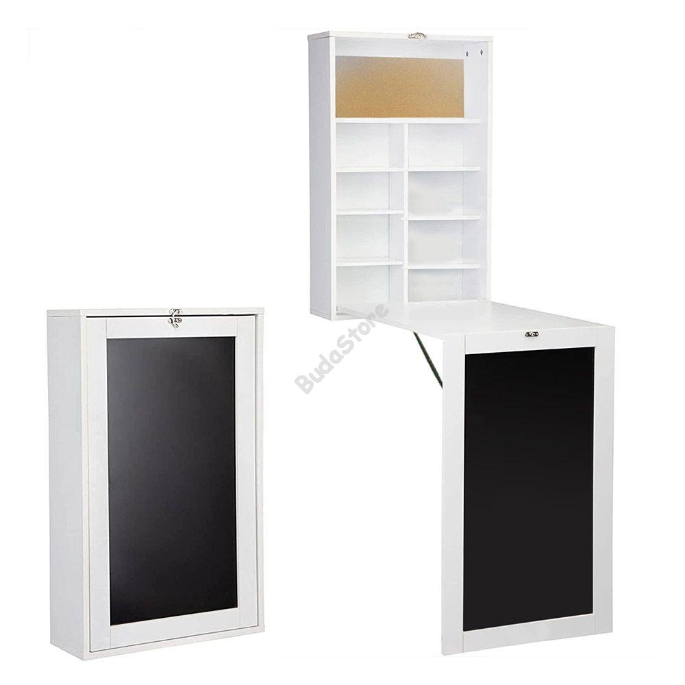 A falra szerelhető lehajtható asztallal rengeteg helyet szabadíthatsz fel. Egy különleges és nagyon dekoratív kivitelezésű íróasztal, amely ideális otthoni munkavégzéshez, íráshoz, rajzoláshoz, házi feladat elkészítéséhez. A dolgozószoba, nappali vagy hálószoba mellett használhatod az étkezőben és a konyhában is, tökéletes választás kis alapterületű lakásokba. Írófelülete alkalmas jegyzet készítéséhez, parafa része pedig cédulák kifüggesztéséhez. A bútor két színben, fekete és fehér változatban érhető el.