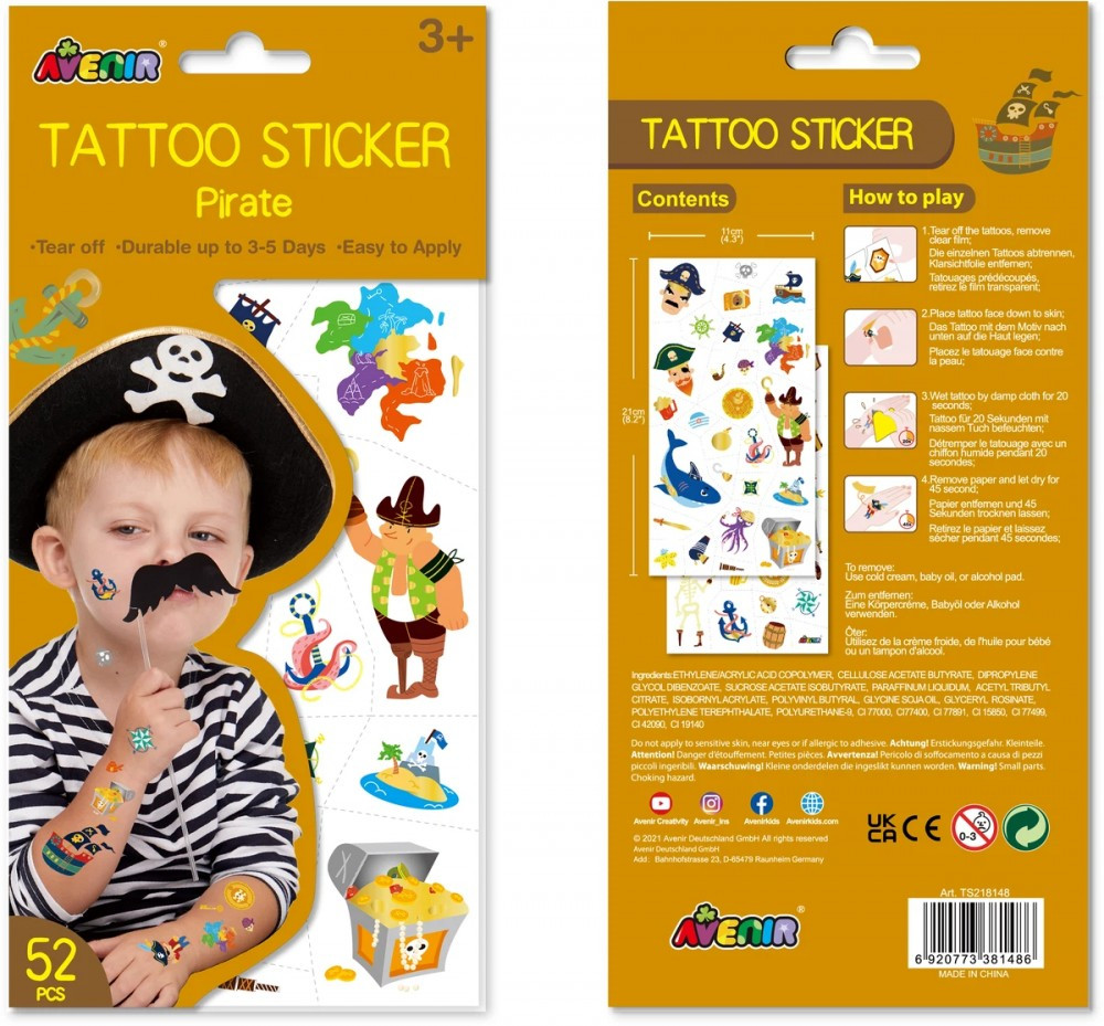 Lemosható tetoválás, Kalózok Avenir AvenirTS218148 1 790 Ft / db [2 db 2%] [5 db 3%] [10 db 5%] Gyártó: AVENIR KIDS Cikkszám: S140_AvenirTS218148 Vonalkód (EAN13): 6920773381486 Súly: 0,03 kg Lemosható tetoválás az Avenir Kids márkától.A csomagban 52 db könnyedén felrakható és lemosható tetováló matrica található. Jellemzők Korcsoport: 3 éves kortól Kinek ajánljuk: Fiúknak Mennyiség db Kosárba tesz