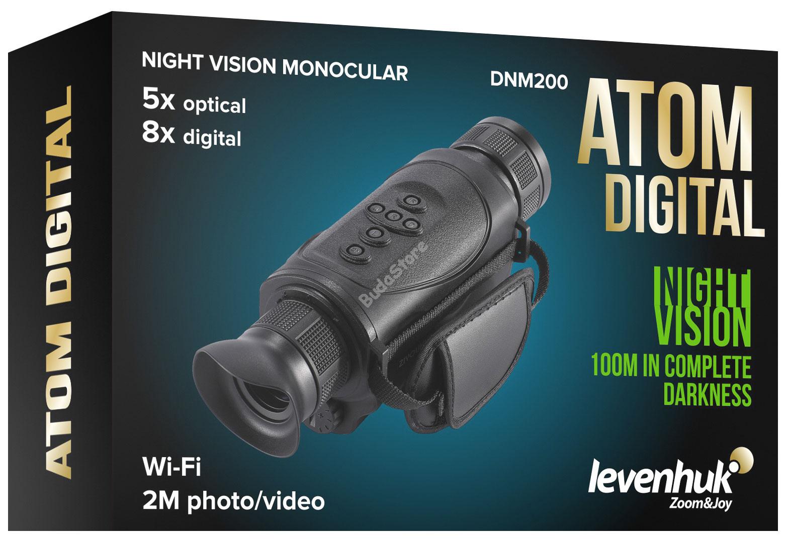 Levenhuk Atom Digital DNM200 éjjellátó egyszemes távcső 81700 99 740 Ft / db [2 db 2%] [5 db 3%] [10 db 5%] Gyártó: LEVENHUK, INC., USA Cikkszám: S101_81700 Súly: 1,15 kg Átvétel: Ez a termék boltunkban személyesen is átvehető. A Levenhuk Atom Digital DNM200 éjjellátó eszközt kényelmesen, akár egy kezében is tarthatja. A vadászok, a túrázók, az extrém sportok kedvelői, valamint a megfigyelést végző személyek (például biztonsági őrök, katasztrófavédelmi dolgozók, járőregységek dolgozói) is bizonyára örömmel fogják használni ezt a hordozható eszközt. Az egyszemes távcső optikai elemei jó minőségű képet biztosítanak 5x-ös nagyításnál, míg a digitális zoom 1–8x-os nagyítást tesz lehetővé. A beépített színes kijelzőn megjelenő képet fénykép vagy videó formájában is lehet rögzíteni. A Levenhuk Atom Digital DNM200 egyszemes távcső tervezési jellemzői A legnagyobb objektívlencse-átmérő a termékcsaládban: 43 mm. Ez javítja az optikai rendszer fényáteresztését. A nagy hatékonyságú, fényérzékeny CCD érzékelő felel a kép kijelzőn való megjelenítéséért. Állítható a dioptriája. A fókuszállító kerék az objektívlencsén található, a vezérlőgombok pedig a felső panelen, közvetlenül az ujjak alatt. Az infravörös világítás erőssége 6 fokozatban állítható. Az eszköz cserélhető elemmel működik. Az energiatakarékos használat érdekébe kikapcsolhatja a kijelzőt vagy magát az egyszemes távcsövet is. Látótávolság és rögzítési funkció Teljes sötétségben 100 méter, szürkületkor és nappal pedig akár 400 méter a látótávolság. A beépített felvevő egység jó minőségű fényképeket és videókat (hang nélkül) is képes rögzíteni. Az adatok a beépített memóriakártyán tárolódnak, ahonnan USB-kábellel továbbíthatók számítógépre. Wi-Fi-n keresztül mobileszközökhöz is csatlakoztatható. A maximális képfelbontás 1920x1080 képpont, a videók pedig Full HD felbontásban kerülnek rögzítésre 30 képkocka/mp sebességgel. Az így készült felvételek élesek és akadásmentesek. Fényképezés során érdemes stabilizálni a képet, úgy, hogy az eszközt egy háromlábú állványra rögzíti (1/4'-es szabványos foglalat). Kérjük, vegye figyelembe: Az infravörös megvilágítást (infravörös sugárzást) a fénykép- és videokamerák, valamint a hasonló elektronikus eszközök működés közben érzékelik. Fő jellemzők: Éjjellátó egyszemes távcső megfigyeléshez, valamint fénykép- és videórögzítéshez éjszaka vagy akár nappal is Látótávolság teljes sötétségben – akár 100 m CCD érzékelő, üvegből készült optikai elemek, optikai és digitális nagyítás kombinációja A legnagyobb objektívlencse a Levenhuk Atom Digital egyszemes távcsövek között: 43 mm Masszív ABS műanyag váz, gumiból készült kényelmes szemkagylók Beépített Wi-Fi modul és felvevő egység, Full HD videórögzítés A készlet tartalma: Éjjellátó eszköz Tok Pánt Akkumulátor 18650 Hálózati adapter USB-kábel Objektívlencse-védő sapka Törlőkendő Felhasználói kézikönyv és garanciajegy MárkaLevenhuk, Inc., USASzavatosságélettartamEAN5905555000008A csomag méretei (HxSzxM):26x18x9 cmSzállítási súly1.15 kgÉjjellátóyesÉjjellátó készülék típusaegyszemesNagyítás foka, x1 — 8Nagyítás foka, x1–8 (digitális), 5 (optikai)Objektívlencse átmérője (rekesznyílás), mm43Közelfókusz, m5Szemlencse dioptriabeállításyesÉrzékelési tartomány, m100KéperősítődigitálisCCD, CCIR mátrixCCDKijelző felbontása, px320x240Képernyő1,54'Beépített felvevőegységyesVideóformátum*.mp4Videó felbontása, px1920x1080 képpont (Full HD) 30 képkocka/mp sebességgelKépformátum*.jpgKép1920x1080Memóriabeépített, 8 GBInfravörös világítórendszeryesHullámhossz, nm715Tápellátás3,7 V, 1800 mAh, Li-ion akkumulátor 18650Akkumulátor üzemideje (óra)6 — 10Optikai elemek anyagaoptikai üvegVáznagy szilárdságú ABS-műanyagÜzemi hőmérséklet-tartomány, °C-20 — 60Állvány1/4Kiegészítő6 fokozatban állítható infravörös világítási erősség, USB-port, Wi-Fi, a kijelző és az eszköz képes automatikusan kikapcsolódniNagyítássalyesHáromlábú állványra történő felszerelésyes Mennyiség db Nem rendelhető