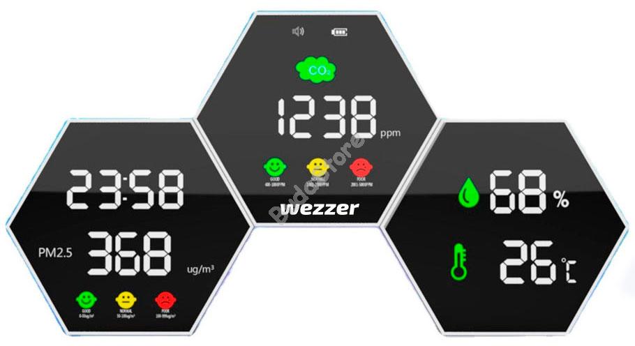 Levenhuk Wezzer Air PRO DM50 levegőminőség-érzékelő 81401 55 090 Ft / db [2 db 2%] [5 db 3%] [10 db 5%] Gyártó: LEVENHUK Cikkszám: S101_81401 Súly: 0,56 kg Átvétel: Ez a termék boltunkban személyesen is átvehető. A Levenhuk Wezzer Air PRO DM50 levegőminőség-érzékelő a levegő emberi egészség szempontjából fontos paramétereit méri, például a szén-dioxid és a finom részecskék szintjét. Ezek azok a láthatatlan veszélyek, amelyekkel a felnőttek és a gyermekek nap mint nap szembesülnek, különösen a nagyvárosokban. A magas CO₂-koncentráció fejfájást és krónikus fáradtságot okozhat, míg a koromból, szulfátokból, nitrátokból és más káros elemekből álló finom részecskék nagy mennyiségben szív- és érrendszeri és légzőszervi megbetegedéseket okozhatnak. Csak annyit kell tennie, hogy a Levenhuk Wezzer Air PRO DM50 érzékelőt a falra akasztja, és mindent tudni fog az otthonában lévő levegő minőségéről, hogy időben megtegye a szükséges lépéseket (szellőztetés, szűrők stb.). Az LCD-képernyőn megjeleníti mindkét szennyezőanyag koncentrációjának pontos értékeit, valamint az aktuális időt, hőmérsékletet és páratartalmat. A nagyméretű számjegyek és a kényelmes kezelőfelület megkönnyítik és kényelmessé teszik az érzékelő használatát. Ezzel a készülékkel mindig tisztában lesz a mikroklíma ingadozásaival, és biztos lehet benne, hogy a helyiség levegője tiszta. A Levenhuk Wezzer Air PRO DM50 egyik előnye a komfortfokozatot jelző két ikon. A mosolyfejek tájékoztatják Önt arról, hogy mennyire jó minőségű a levegő, amelyet belélegzik. Ezenkívül bizonyos CO₂-értékek túllépésekor riasztások jelennek meg. Így még egy gyermek is meg tudja mondani, hogy ideje kiszellőztetni a helyiséget, ha csak ránéz az érzékelőre. A váz anyaga tartós és nem mérgező ABS műanyagból készült. A három képernyőből álló, látványos kialakítású készülék falra szerelhető vagy asztalra is helyezhető. Főbb jellemzők: A levegőminőséggel kapcsolatos átfogó tájékoztatás a jó egészség kulcsa Méri a CO₂ és az egészségre káros részecskék szintjét Szellőztetési riasztások Óra, hőmérő, páratartalom-mérő, két komfortfokozat-skála Masszív, tartós ABS műanyag háttérvilágítással ellátott színes LCD-képernyők Beépített újratölthető akkumulátor töltésszint-jelzővel A készlet tartalma: Levegőminőség-érzékelő USB-kábel Felhasználói kézikönyv és garanciajegy MárkaLevenhuk, Inc., USASzavatosságélettartamEAN5905555003085A csomag méretei (HxSzxM):28x15x3 cmSzállítási súly0.56 kgFelhasználás helyebeltériTípuslevegőminőség-elemző Beépített funkciókCO₂ érzékelő, higrométer, hőmérő, levegőrészecske-figyelő, óraKialakításasztallapi, digitális, falra szerelt, vezeték nélküliHasználatotthoni használatra=== Elválasztójel ===Higrométer (levegő páratartalma)Mértékegységek% (RH)Mérési tartomány20–85%Mérési felbontás1%=== Elválasztójel ===Hőmérő (hőmérséklet)Mértékegységek°CMérési tartomány beltéren-10...+50 °CMérési tartomány beltéren-10 — 50Mérési felbontás1 °C=== Elválasztójel ===Óra (idő/dátum/naptár)ÓrayesIdőformátum24 órás=== Elválasztójel ===LevegőelemzőRészecskeelemző (PM)yesCO₂ érzékelőyesMérési tartományCO₂: 400–5000 md (ppm) PM2,5: 0–999 µg/m3Mérési felbontásCO₂: 1 PM2,5: 1Rendeltetésriasztás kritikus CO₂-értékről=== Elválasztójel ===Általános műszaki jellemzőkKépernyő típusaszínesKépernyők száma3Képernyők száma3Tápellátásbeépített Li-ionos akkumulátor 2000 mAh, hálózati aljzatból tölthető USB-kábel segítségével (tartozék), 5 V, 1000 mA (szükség van egy további tápadapterre vagy okostelefon-töltőre)Váznagy szilárdságú ABS-műanyagVilágítássalyesMegvilágításigenKényelmi szint értékelése összességébenyes Mennyiség db Nem rendelhető