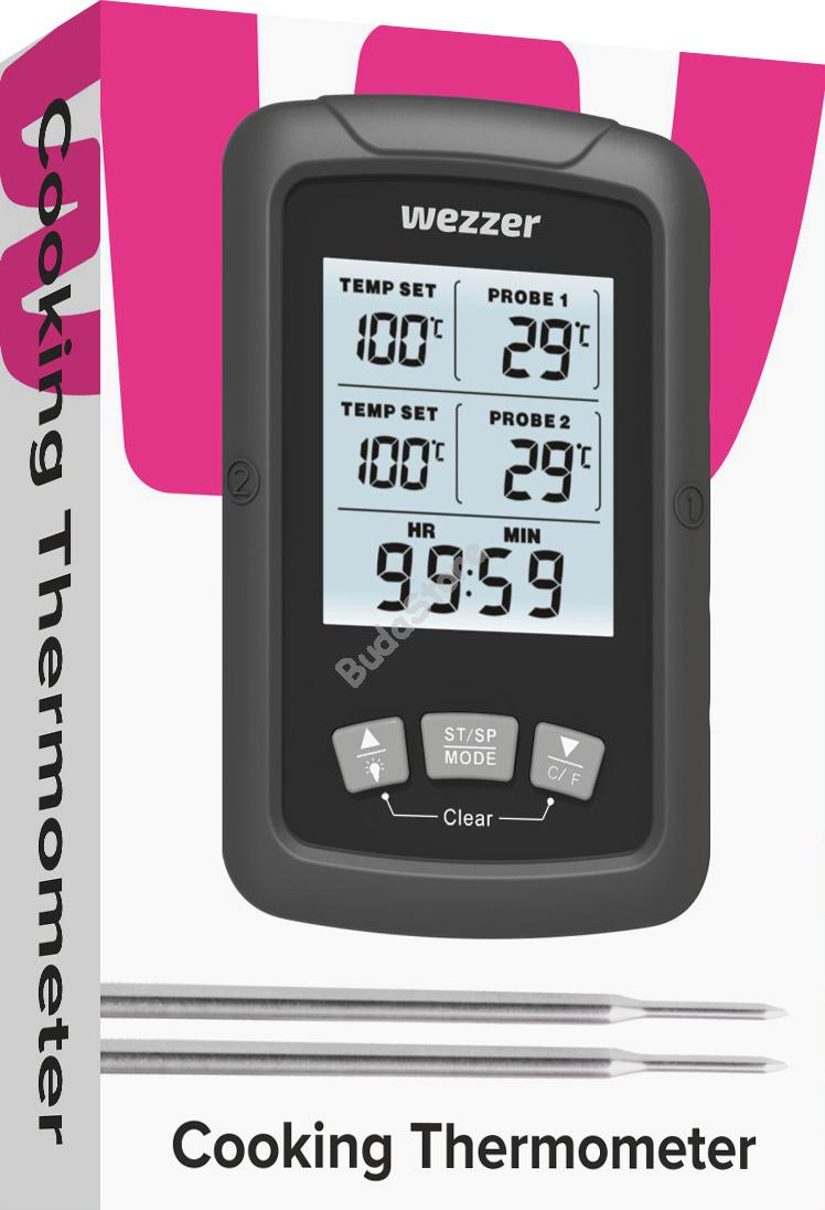 Levenhuk Wezzer Cook MT60 Főzési/sütési hőmérő 81396 7 210 Ft / db [2 db 2%] [5 db 3%] [10 db 5%] Gyártó: LEVENHUK Cikkszám: S101_81396 Súly: 0,22 kg Átvétel: Ez a termék boltunkban személyesen is átvehető. A Levenhuk Wezzer Cook MT60 hőmérő, amely két darab, rugalmas vezetékkel csatlakoztatott hőszondával rendelkezik, hasznos eszköz sütéskor és főzéskor egyaránt. Egyszerre mérheti meg két, különböző helyen készülő étel hőmérsékletét. Például, az egyik lehet a tűzhelyen, a másik pedig a grillen. A túlmelegedés elleni riasztás beállítási lehetőségének köszönhetően a hőmérő megmutatja, ha a hőmérséklet magasabb a kelleténél. Így megelőzhető, hogy a hús vagy a sütemény megégjen, vagy netalán túlzottan kiszáradjon. Beépített időzítővel is fel van szerelve. A hőszonda fő funkciója klasszikus hőmérőként, hogy széles kőrű hőmérséklet-tartomány mérésére képes. Vészhelyzet esetén például a hagyományos lázmérő helyett megmérheti vele teste hőmérsékletét. Segítségével meghatározható a fürdővíz, valamint a beltéri vagy kültéri környezeti levegő hőmérséklete. Utazáskor a hőszondát magánál tartva ellenőrizheti a hordozható hűtőtáskában tárolt élelmiszerek környezeti feltételeit. Hasznosnak bizonyul továbbá a főzési hőmérsékletre kimondottan érzékeny teakészítés során. A hőmérsékleti értékeket az eszköz a beépített, egyszínű, háttérmegvilágítással rendelkező képernyőn jeleníti meg. A szabályozó elemek alul találhatók meg: Használatukkal kiválaszthatja, melyik szondát és melyik mértékegységet szeretné alkalmazni (°F vagy °C). Az eszköz két darab standard elemmel működik. Az energiatakarékos használat érdekében automatikus kikapcsoló funkcióval rendelkezik, mind a háttérvilágításhoz, mind pedig magához az eszközhöz is. Főbb jellemzők: Két darab hőszonda két különböző étel hőmérsékletének egyidejű megméréséhez Túlmelegedés esetén riasztás, amely megvédi az ételeket a megégéstől Nagy méretű, monokróm kijelző háttérvilágítással és éles kontrasztú számjegyekkel Elemről működik jelzi, ha lemerülőben van az elem, valamint automatikusan ki tud kapcsolni A váz tartós ABS műanyagból készült A készlet a következőket tartalmazza: Főzési/sütési hőmérő Felhasználói kézikönyv és garanciajegy MárkaLevenhuk, Inc., USASzavatosságélettartamEAN5905555016306A csomag méretei (HxSzxM):19x13x4 cmSzállítási súly0.215 kgFelhasználás helyebeltéri, kültériTípushőszondaBeépített funkciókhőmérőKialakításdigitálisHasználatotthoni használatra=== Elválasztójel ===Hőmérő (hőmérséklet)Mértékegységek°C, °FMérési tartomány beltéren−50°C to +300°C (−58°F to +572°F)Mérési tartomány beltéren-50 — 300Mérési tartomány kültéren−50°C to +300°C (−58°F to +572°F)Mérési tartomány kültéren-50 — 300Rendeltetésidőzítő, riasztás túlmelegedés esetén=== Elválasztójel ===Általános műszaki jellemzőkKépernyő típusaegyszínűKépernyők száma1Képernyők száma1Tápellátás2 db AAA elem (a készlet nem tartalmazza)Váznagy szilárdságú ABS-műanyagVilágítássalyesKiegészítőalacsony töltésszint jelzése, automatikus kikapcsolási funkció, szondaméret: 100 mm (kábelvezeték hossza 1 méter) Mennyiség db Nem rendelhető