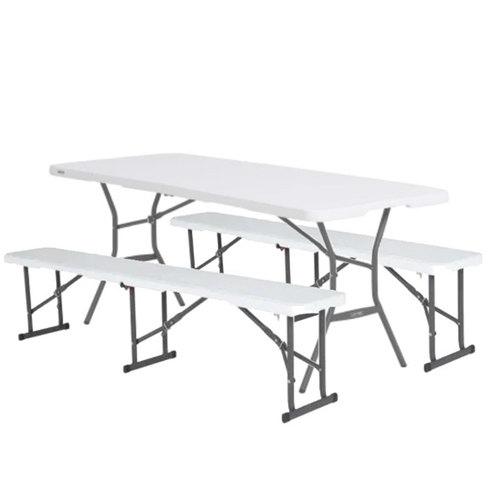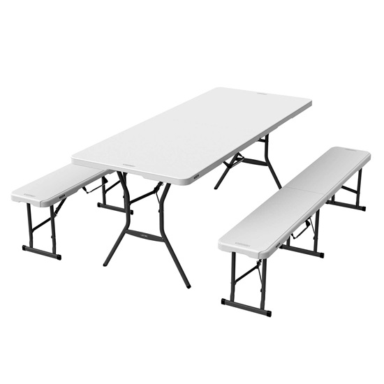LIFETIME összecsukható asztal 2 pados szett 3121570 70 730 Ft / db [2 db 2%] [5 db 3%] [10 db 5%] Gyártó: LIFETIME Cikkszám: S032_3121570 Súly: 27,00 kg LIFETIME összecsukható asztal 2 pados szett 3121570 Lifetime összecsukható asztal, két összecsukható paddal 2 ÉV GARANCIA UV álló, kíváló minőségű polietilén (HDPE) asztal- és ülőfelület Rozsdaálló, porfestett acél keret Összecsukható, kis helyen tárolható és szállítható Könnyű kiszerelés Könnyen tisztítható Kül- és beltéri felhasználásra Technikai adatok Asztal nyitva: 183,6 x 76, 2 x 73,6 cm (H x Sz x M) Asztal összecsukva: 94, 1 x 76, 2 x 8,7 cm (H x Sz x M) Pad nyitva: 182,8 x 29, 2 x 42, 1 cm (H x Sz x M) Pad összecsukva: 93,5 x 29, 2 x 9 cm (H x Sz x M) Asztallap vastagsága: 4, 2 cm Tömeg: 26,3 kg Mennyiség db Kosárba tesz