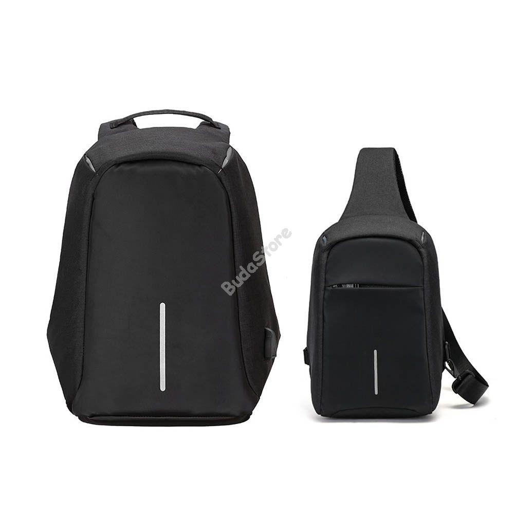 Lopásbiztos hátizsák és oldaltáska szett fekete HOP1000970-1