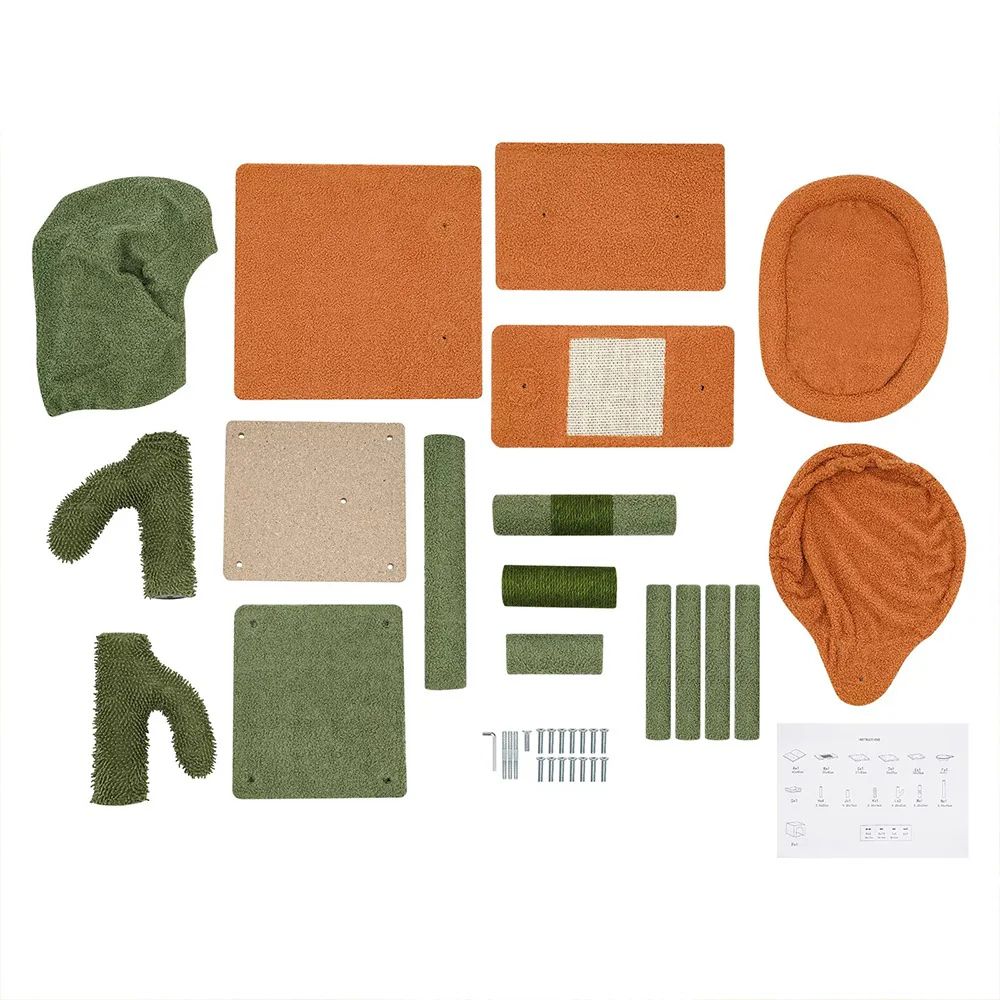 A macskamászóka több szinten kínál fekhelyeket: egy tágas kuckót, egy kényelmes függőágyat és egy felső kilátópontot, ahol cicád nyugodtan szunyókálhat vagy figyelheti a környezetét. A kaparásra alkalmas kötélborítás segít megóvni a bútorokat a karmolásoktól.