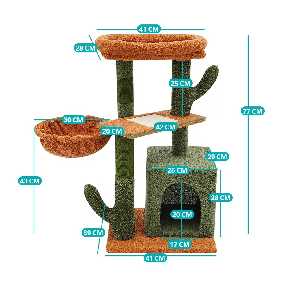 Ez a különleges kaktusz formájú macskamászóka nemcsak esztétikus kiegészítője lehet otthonodnak, hanem cicád kedvenc pihenő- és játszóhelye is. A stabil szerkezet többféle fekvő- és kaparófelületet kínál, miközben a puha zsenília borítás kényelmet biztosít. A masszív karton és kötél anyag garantálja a tartósságot, így hosszú távon is ideális választás macskád számára.